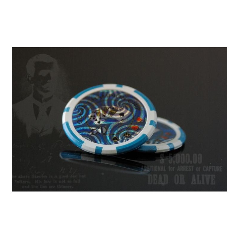 - 150 ks - hodnota 50, svetlo modré žetóny