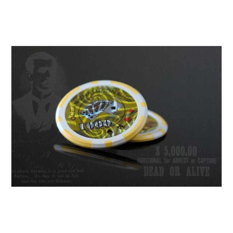 Set obsahuje vysoko kvalitné a reflexné laserové žetóny so zaoblenými hranami OCEAN, troje plastové karty, s ktorými je nemožné podvádzať. Tento set bol vytvorený profesionálnymi hráčmi. Kufrík má kolieska pre ľahšiu prepravu.