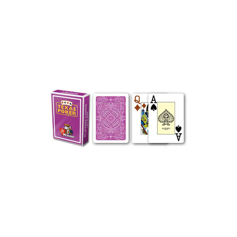 Kvalitné pokerové karty zo 100 % plastu obľúbenej značky Modiano. Karty majú klasický širokouhlý formát. Majú dva rohy - teda v protiľahlých rohoch je uvedená hodnota karty. Modiano karty sú veľmi obľúbené u pravidelných hráčov pre svoju vysokú životnosť a odolnosť. Vďaka zloženiu zo 100 % plastu vydržia tieto karty 100-krát viac hier ako karty papierové alebo iba s plastovým poťahom. Karty sú umývateľné, vodotesné a pýšia sa svojou dlhou životnosťou.