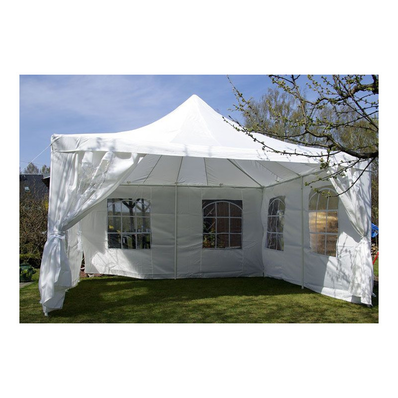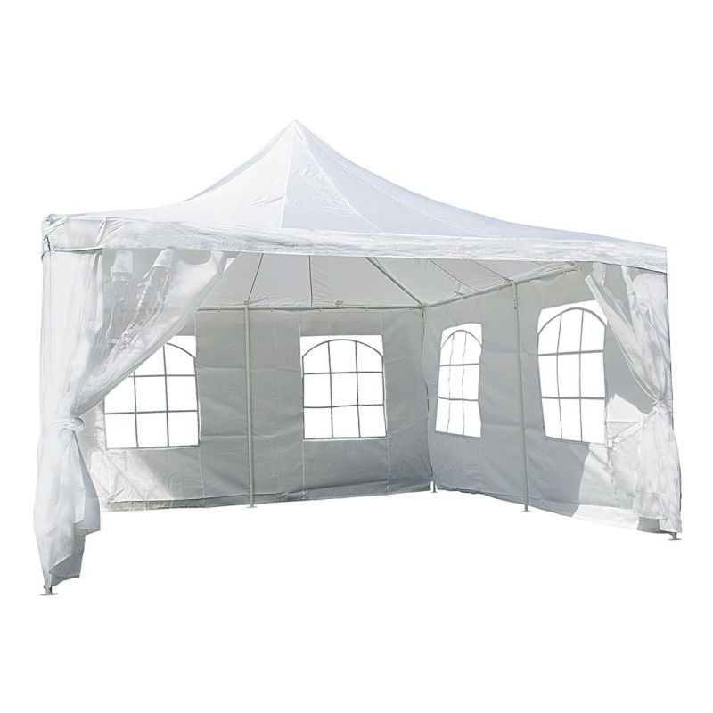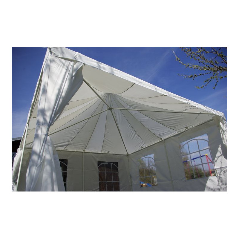 Elegantný vodotesný stan je ideálny na záhradu, festivaly a rôzne udalosti. Pre rýchle a jednoduché zostavenie sú všetky tyče číslované. V letných dňoch Vám stan poskytne dostatok tieňa a v chladnejších večerných hodinách Vás ochráni pred chladom a prievanom. Vstup do stanu je riešený prednou stenou so zipsom.