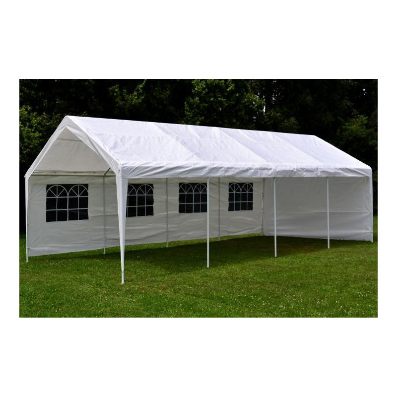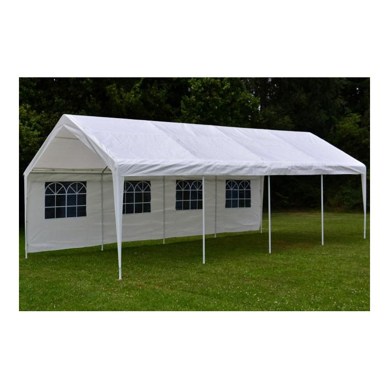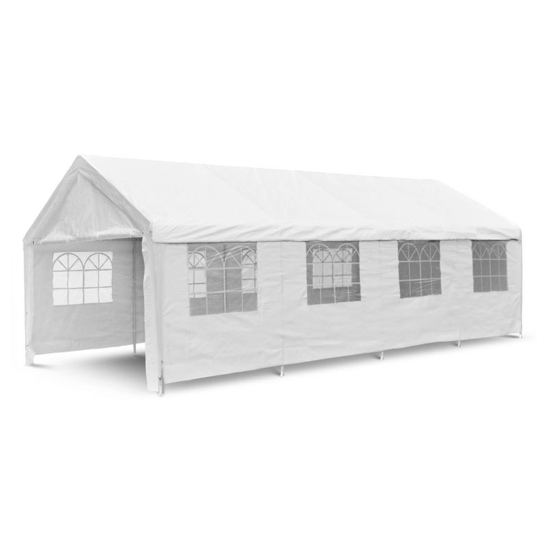 Elegantný záhradný párty stan vyrobený z nepremokavého materiálu polyetylénu je ideálny pre všetky akcie a oslavy. Ochráni vás pred nečakanými dažďovými prehánkami, nadmerným slnečným žiarením a v chladnejších večerných hodinách pred chladom a prievanom. Stan je úplne uzavretý.