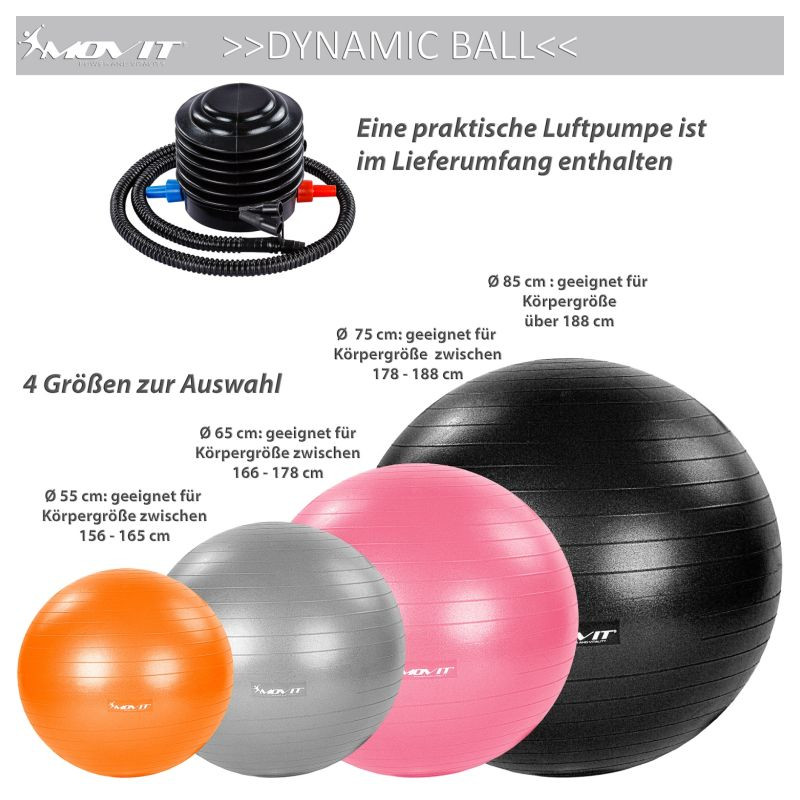 S gymnastickou cvičebnou loptou MOVIT ponúknete svojim chrbtovým svalom vítanú zmenu prostredníctvom dynamického sedenia, neustáleho pohybu a udržiavania rovnováhy. Chrbtica je držaná vo vzpriamenejšej polohe na sedacej lopte ako na konvenčných stoličkách, čo môže viesť ku zlepšeniu držania tela.
