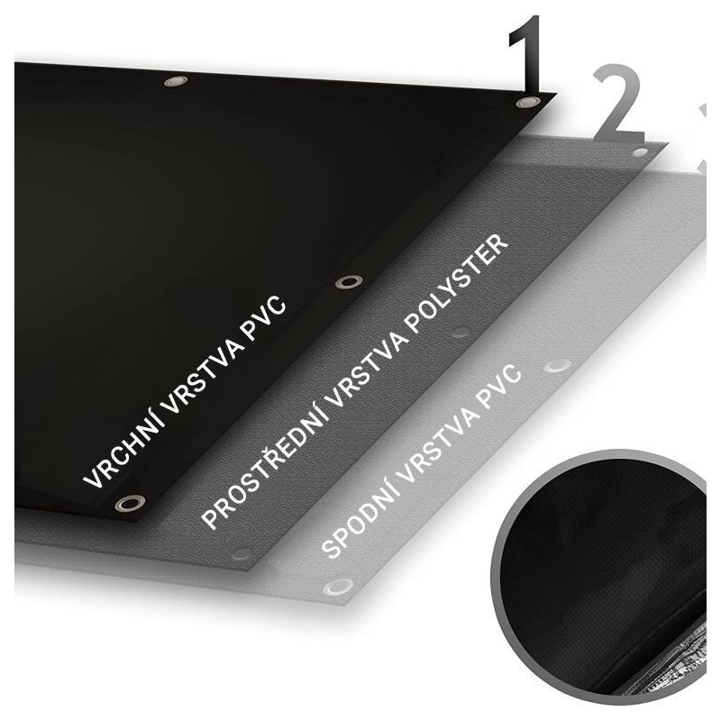 • materiál: vrchná a spodná vrstva z PVC, stredná vrstva z polyesteru