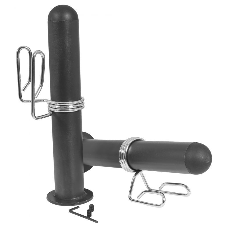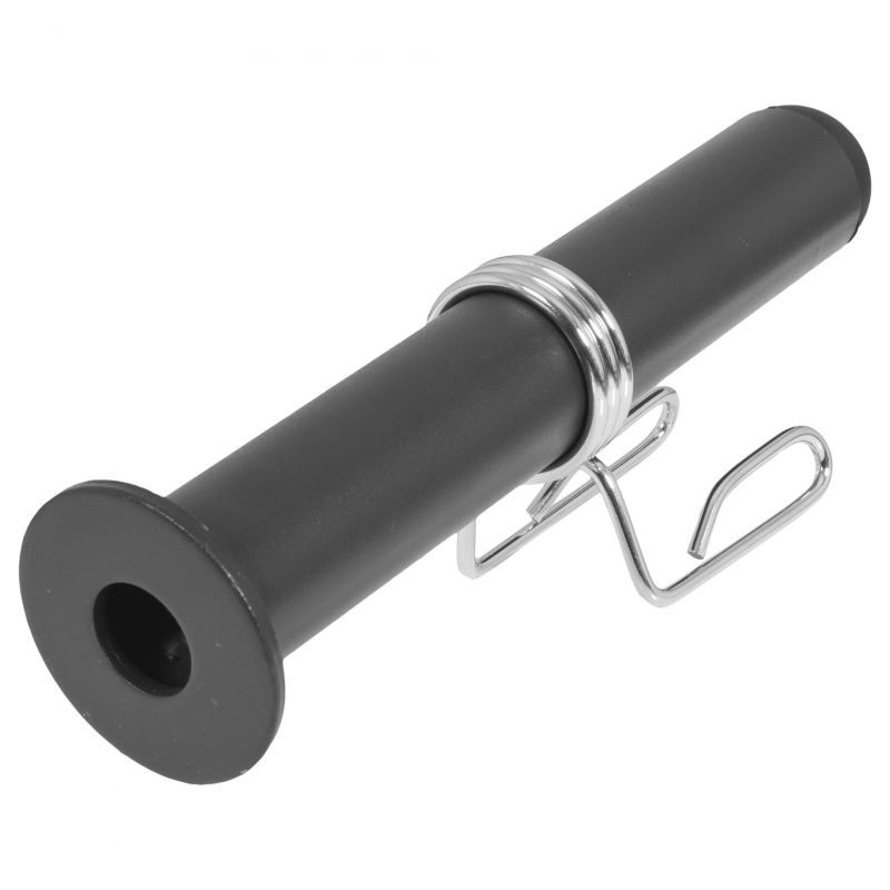 Odstráňte dve pružinové pojistky a na ich miesto nasaďte adaptéry na činku. Oba adaptéry pripevníte k tyči pomocou dvoch dodaných skrutiek. Skrutky nemajú hlavičky, takže sa zašrubujú do otvoru až do roviny s povrchom. Teraz môžete na "novú" činku nasadiť závažia s otvorom o veľkosti 50 mm a zabezpečiť ich pomocou pružinových zámkov. Týmto spôsobom môžete zintenzívniť svoj silový tréning nasadením ťažších kotúčov a dosiahnuť nových tréningových cieľov.
