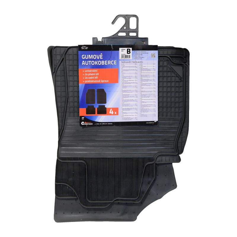 Súprava 2x predný diel + 2x zadný diel univerzálnych gumových autokobercov s protišmykovou úpravou. Vďaka jedinečnému tvaru kobercov a systému prelisov, v ktorých je možné časť koberca oddeliť nožnicami, sú tieto autokoberce univerzálne pre celý rad vozidiel.