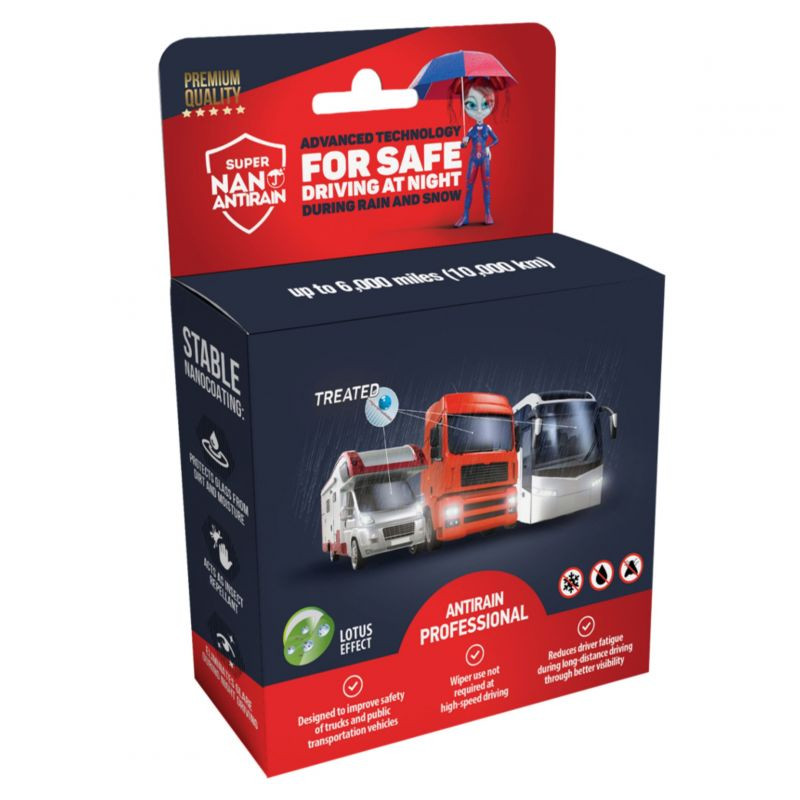 Ochranný nanopoter na autosklá Super Nano Antirain bol vyvinutý s cieľom zlepšiť viditeľnosť pri jazde za zlého počasia, a zároveň chrániť pred nečistotami. Prípravok formuje ochrannú hydrofóbnu vrstvu na povrchu skla, vďaka ktorej môžete aj autosklu prepožičať vlastnosti laku, ošetreného prémiovými voskami na karosérii.