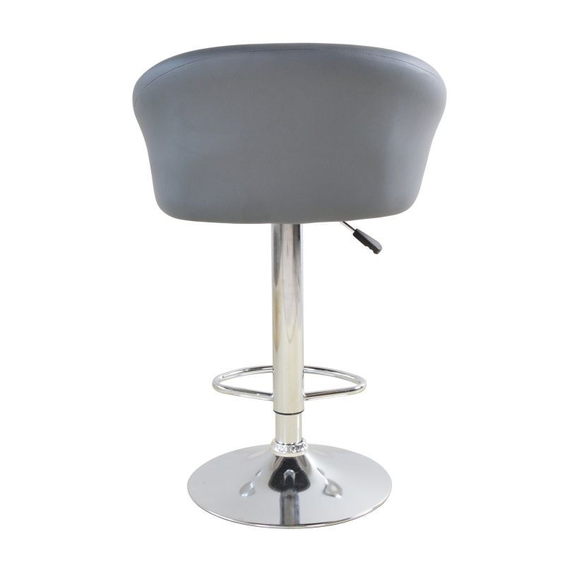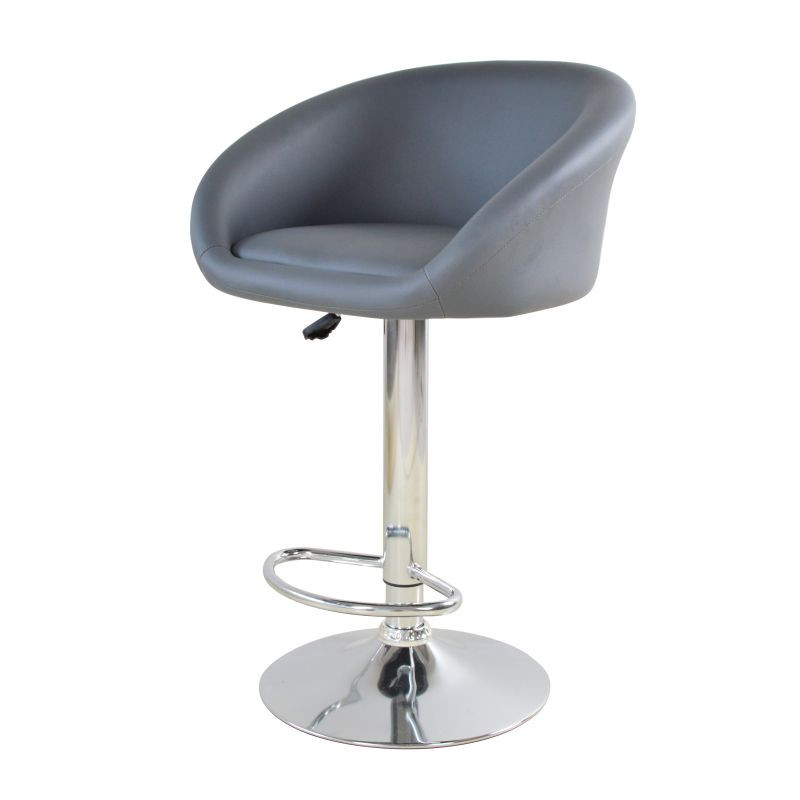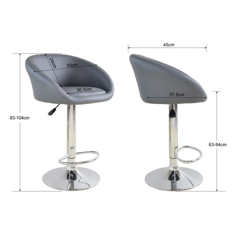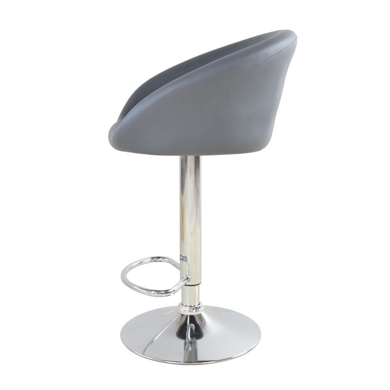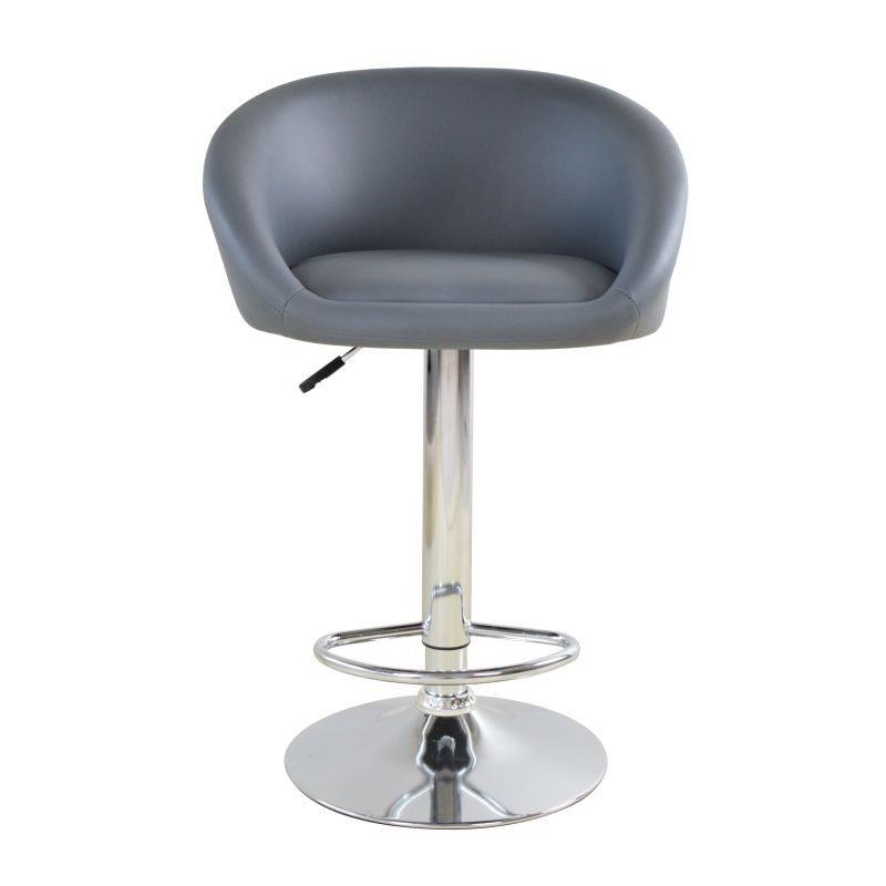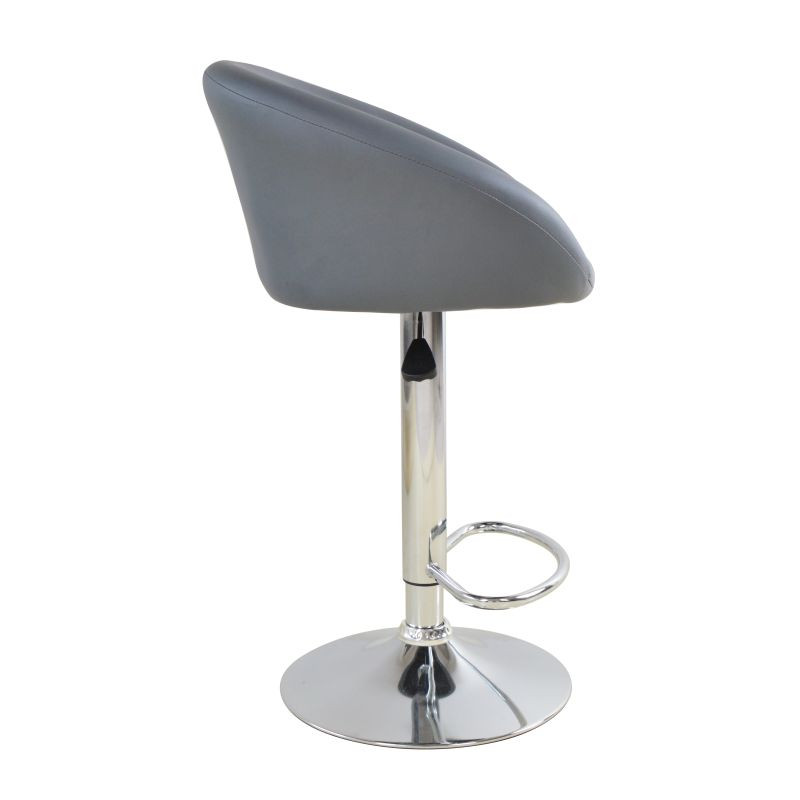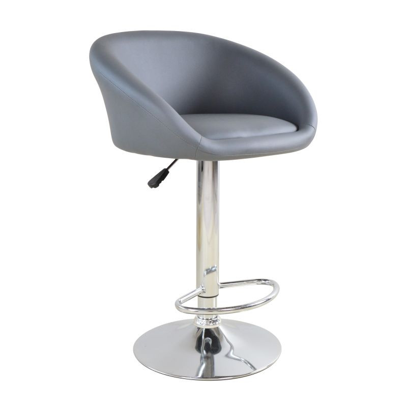 Elegantná a moderná barová stolička s pohodlným sedákom z PU materiálu. Stolička je vybavená nastaviteľnou výškou vďaka plynovému piestu, čo zaisťuje pohodlie pre každého užívateľa. Stabilná základňa z pochrómovanej ocele dodáva stoličke moderný vzhľad a maximálnu stabilitu. Vďaka univerzálnemu antracitovému odtieňu je táto stolička ideálnym doplnkom do kuchyne, baru alebo jedálne.
