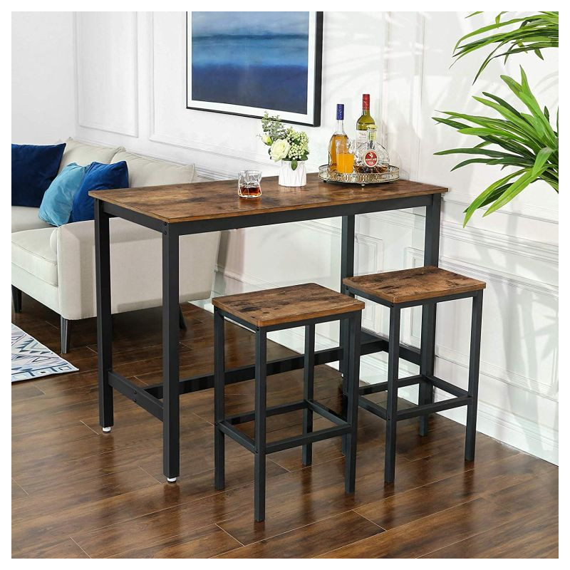 Doprajte si pohodlie a štýl zakaždým, keď si sadnete na túto sadu barových stoličiek. Rustikálna hnedá a čierna oceľ vytvára jedinečný vzhľad, ktorý ohromí každého hosťa. Ideálne na raňajky, večerné drinky a rodinné oslavy.