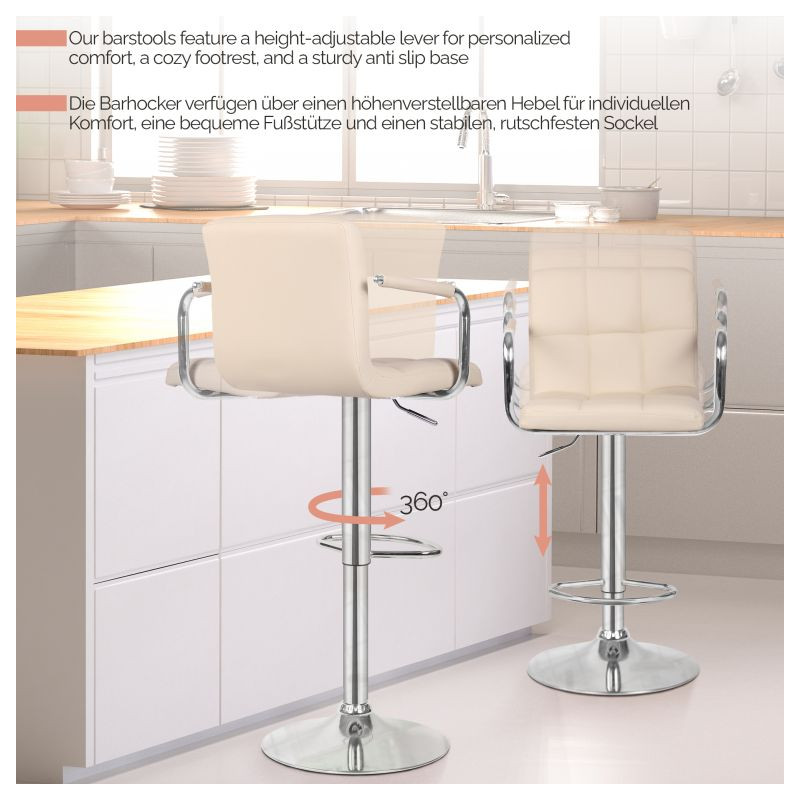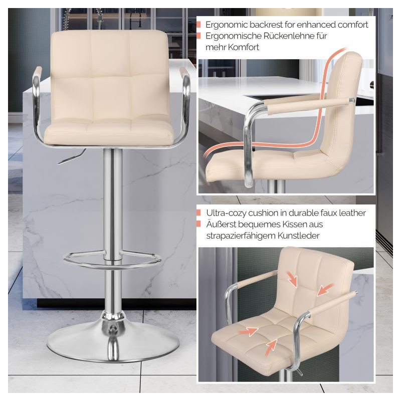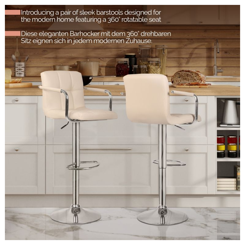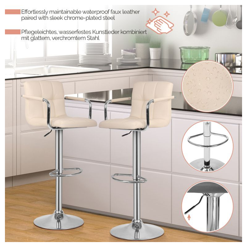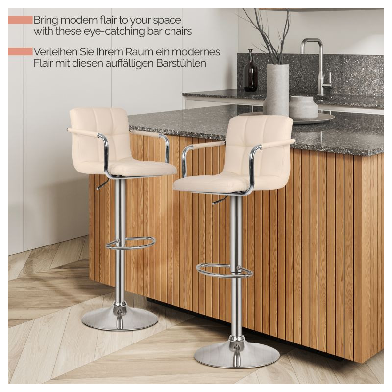 Premeňte svoj priestor pomocou týchto elegantných barových stoličiek, ktoré sa skvele hodia do kuchyne, baru alebo kancelárie. Vďaka výškovo nastaviteľnému mechanizmu sú flexibilné pre všetky výšky pultu, zatiaľ čo chrómovaný oceľový rám a zaoblená 38,5 cm vysoká základňa zaisťujú robustnosť a stabilitu.