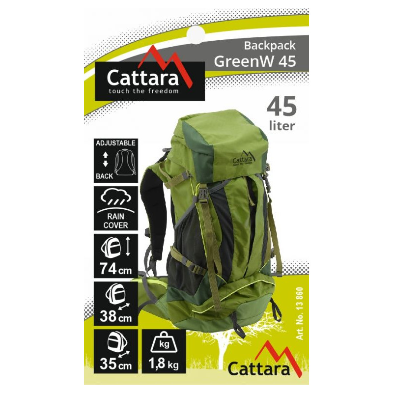 Praktický batoh na túry do prírody alebo aj do mesta. Je vyrobený z polyesteru a má kapacitu 45 l. Na bokoch a čelnej strane sa nachádza mnoho vreciek pre uschovanie vecí, ktoré budete k výletu potrebovať. Má tiež popruhy, ktoré sa ľahko nastavia a zaručia tak dobré nosenie po celú dobu chôdze. Neobsahuje hrudný ani bedrový pás.