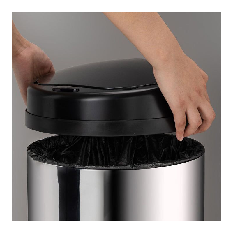 Odolná konštrukcia z nerezovej ocele a priestranný objem 40 litrov zaručujú dlhú životnosť a dostatok miesta na bežný odpad. Automatické otváranie veka pomocou senzora alebo dotykového panelu, jednoduchá údržba a bezpečné uchytenie vreca vďaka pevnému krúžku.