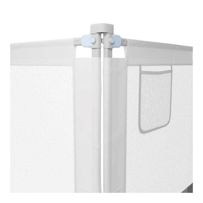 Robustná konštrukcia z ocele a odolná tkanina Oxford zaisťujú dlhú životnosť a jednoduchú údržbu. Jednoduché skladanie a montáž umožňujú rýchle použitie doma aj na cestách. Zábranu je možné kombinovať s ďalšími dielmi pre väčšiu bezpečnosť.