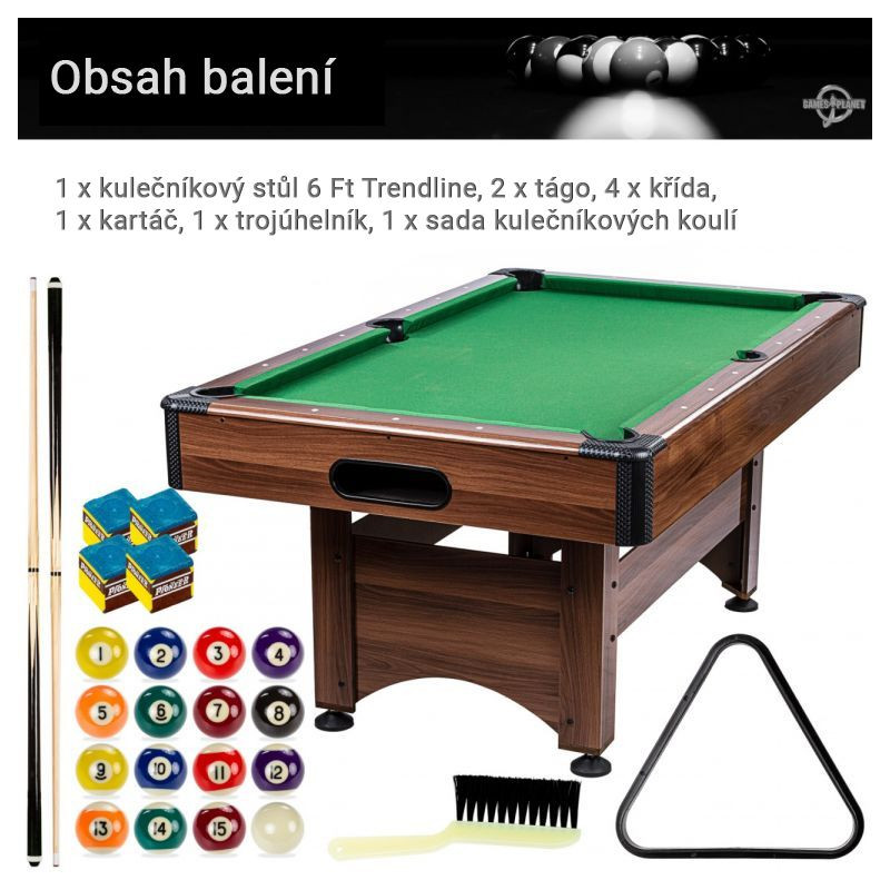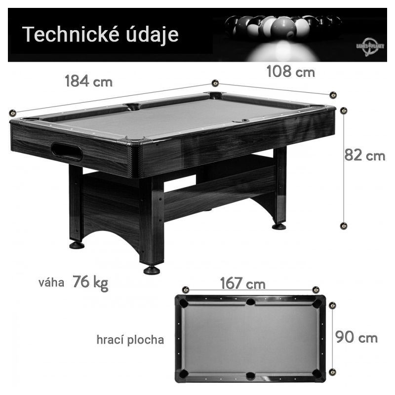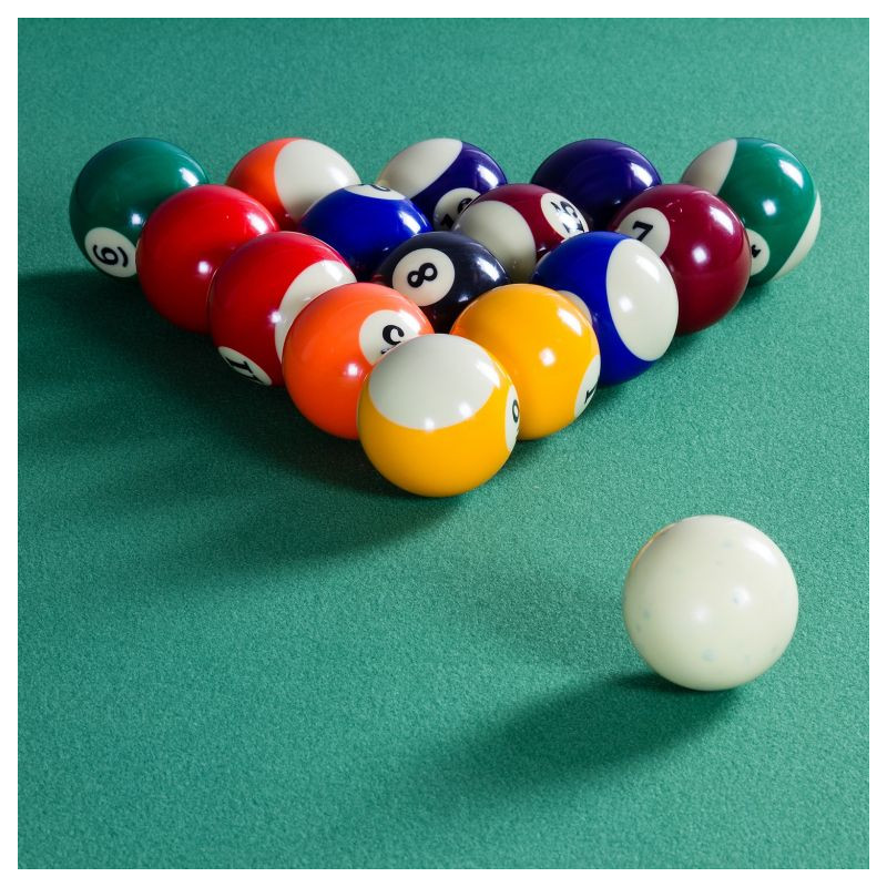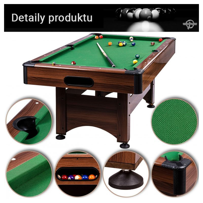 Vďaka vratnému systému sa guličky automaticky dostanú do centrálneho zberného miesta, odkiaľ ich možno ľahko odobrať. Vďaka výškovo nastaviteľným nohám je možné stôl ideálne vyvážiť a uviesť do rovnováhy. Okrem ochrannej funkcie rohov znižuje chránič hrán aj riziko poranenia. Hracie pole je už kompletne zmontované, treba iba pripevniť nohy. Vďaka príslušenstvu (2x tágo, 2x krieda, 1x kefa, 1x sada 44,5 mm živicových biliardových gulí, 1x trojuholník) máte všetko potrebné, aby ste mohli okamžite začať hrať.