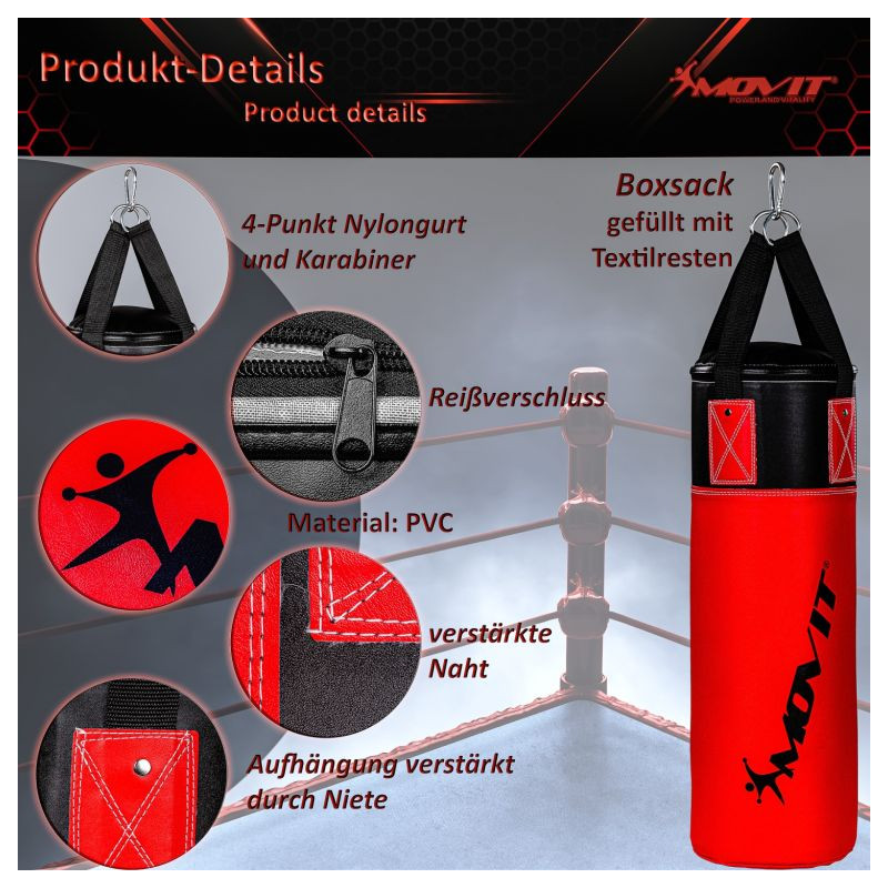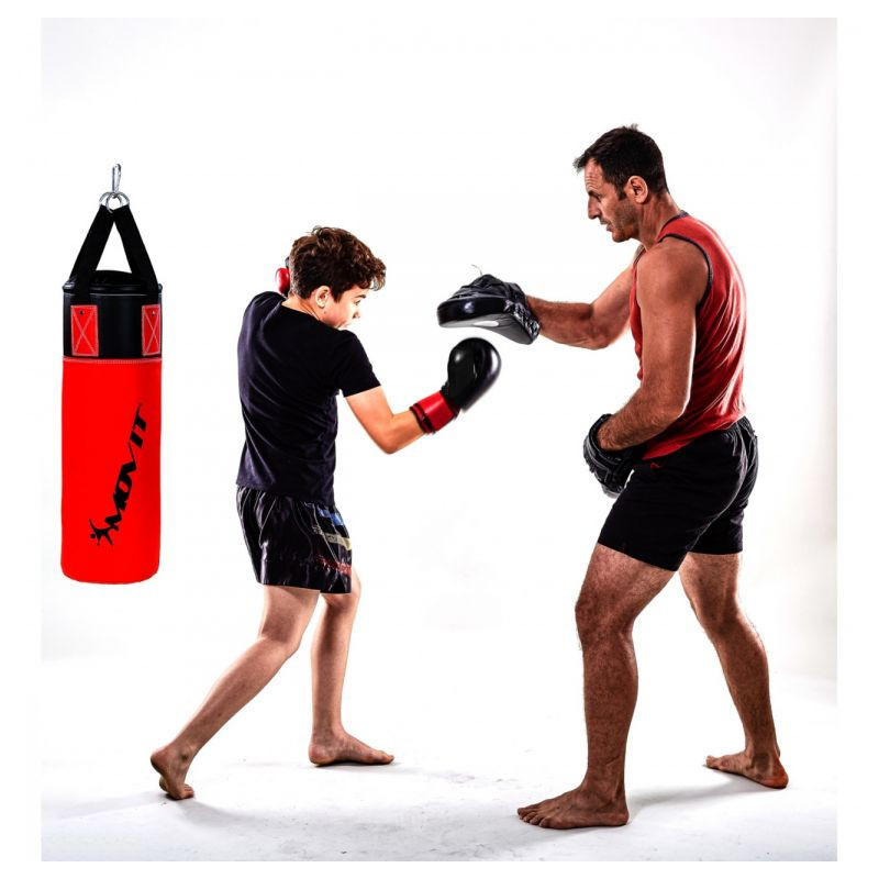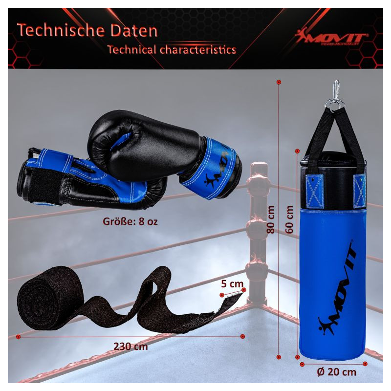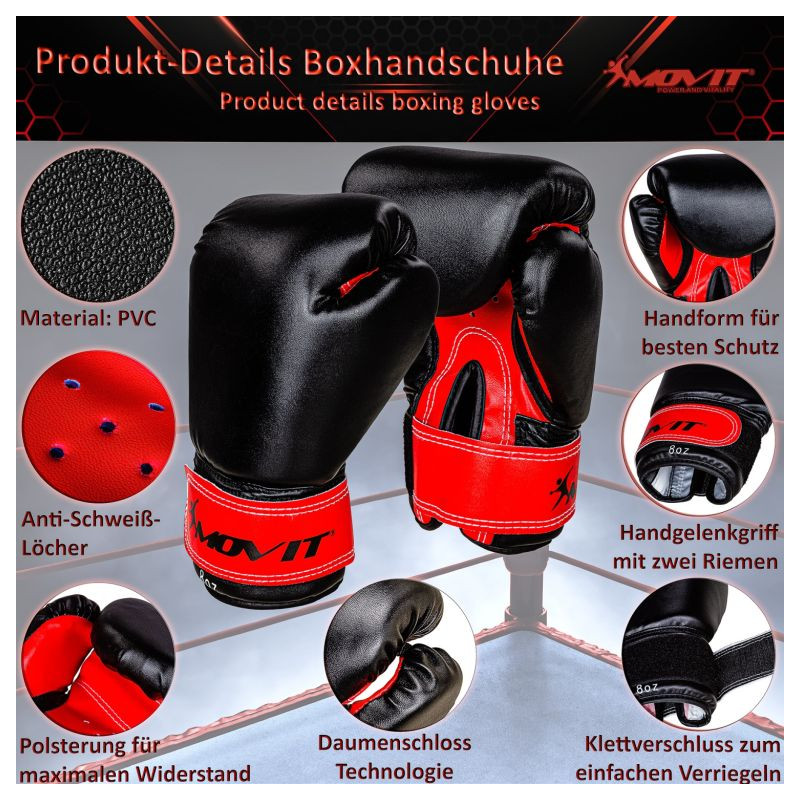 Boxerské rukavice majú fixáciu palce, sú polstrované penou a vybavené otvory pre vzduch a suchým zipsom.