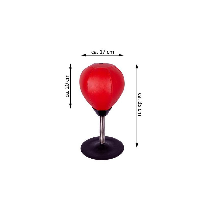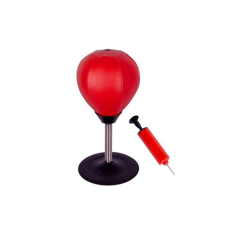 Robustná minifunkčná boxovacia hruška na stôl alebo do kancelárie. Kaučuková prísavka spoľahlivo priľne k akémukoľvek plochému povrchu. Tak je boxerská lopta pripravená na tvrdé zásahy. Pružná oceľová pružina umožňuje rýchly návrat hrušky späť do pôvodnej polohy. Boxovacia sada je dodávaná s pumpičkou s ihlovým ventilom, môžete tak sami určiť stupeň tvrdosti samotnej lopty.
