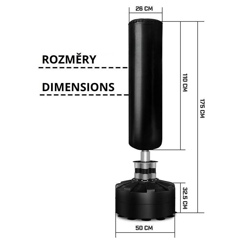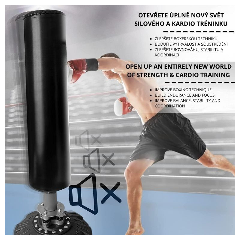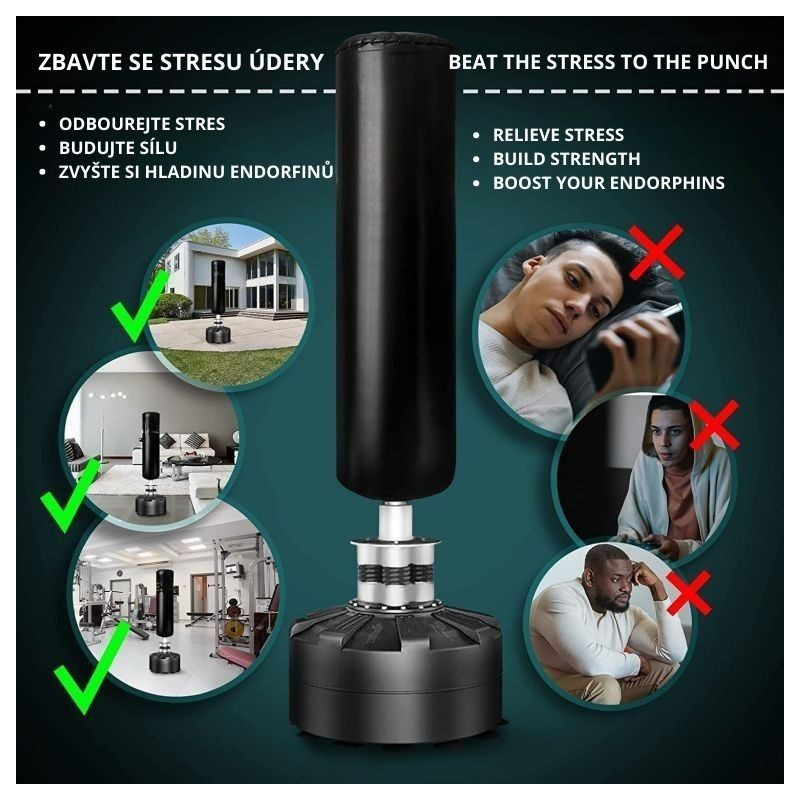Zažite dokonalý spôsob, ako vybiť stres, zlepšiť kondíciu a posilniť celé telo. Voľne stojace boxovacie vrece s výškou 175 cm je ideálnym parťákom pre tréning úderov i kopov, či už patríte medzi skúsených boxerov, alebo si chcete dopriať energické odreagovanie po náročnom dni. Vďaka atraktívnemu dizajnu v čierno-striebornej kombinácii skvele zapadne do každej domácej posilňovne.