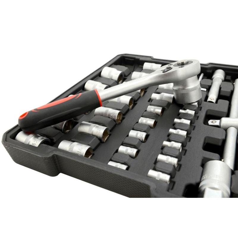 - 1 x račňa 1/2, 1 x račňa 1/4, 1 x T vratidlo pre nadstavce 1/2, 1 x T vratidlo pre nadstavce 1/4, 1 x skrutkovač pre nadstavce 1/4, 12 x nadstavec 1/4 (4, 4.5, 5, 5.5, 6, 7, 8, 9, 10, 11, 12, 13 mm), 17 x nadstavec 1/2 (10, 11, 12, 13, 14, 15, 16, 17, 18, 19, 20, 21, 22, 23, 24, 27, 30 mm), 2 x nadstavec 1/2 dlhý (16, 21 mm), 1 x nadstavec 1/2 kĺbový, 1 x nadstavec 1/4 kĺbový, 1 x nadstavec 1/2 predlžovací 120 mm, 1 x nadstavec 1/4 predlžovací 50 mm, 1 x nadstavec 1/4 predlžovací 100 mm, 1 x nadstavec ohybný 145 mm