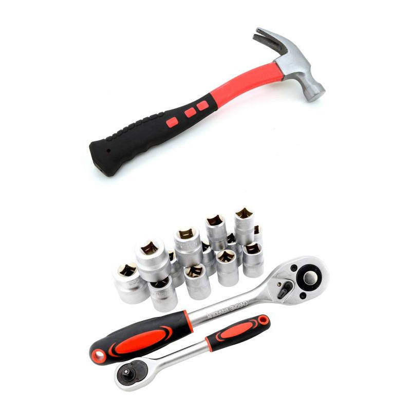 - 1 x kliešte štípacie 180 mm, 1 x nastaviteľný kľúč 200 mm, 1 x kliešte siko 230 mm,1 x kliešte predĺžené 180 mm, 1 x kliešte univerzálne 150 mm, 10 x kľúč očkoplochý (8, 9, 10, 11, 12, 13, 14, 15, 17, 19 mm)