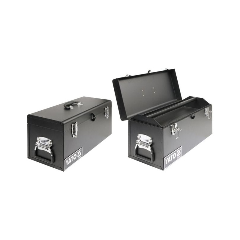 Kovový box na uloženie náradia s madlom pre jednoduché prenášanie. Zatváranie kufra je riešené 2x kovovými sponami, je tak možné uzamknúť ho pomocou zámočkov. Vo vnútri boxu je umiestnená vyberateľná priehradka na drobné náradie.