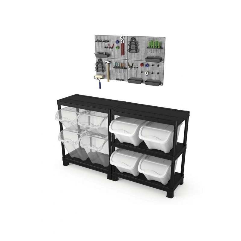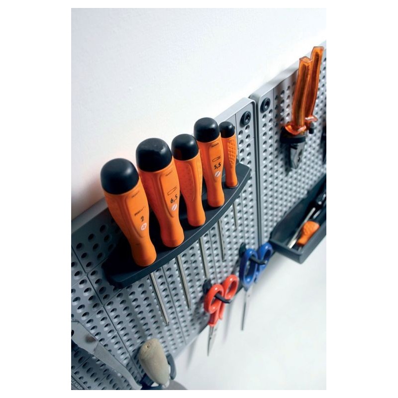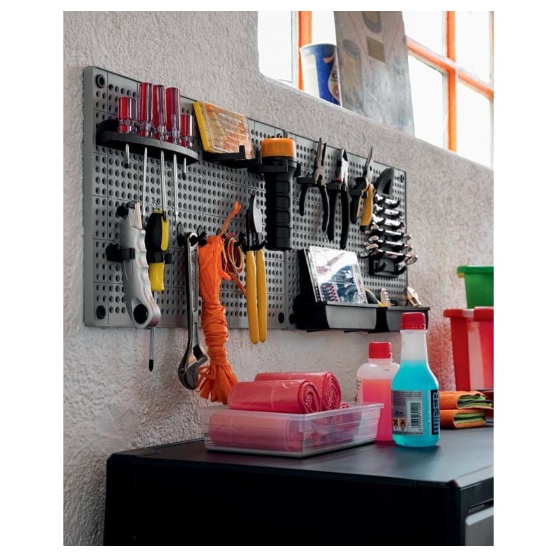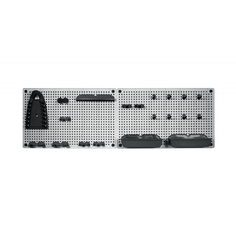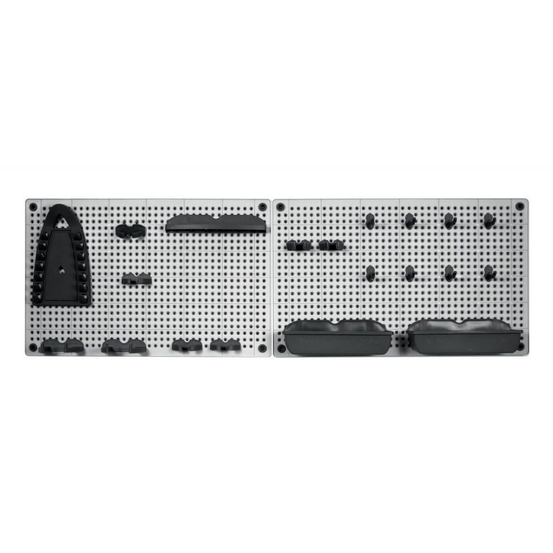 Veľmi praktický a štýlový organizér na náradie vyrobený z vysoko odolného plastu. Organizér sa jednoducho prirobí priamo na stenu, je ideálna pre usporiadanie všetkých dielenských nástrojov, ktoré potrebujete mať vždy po ruke. Horizontálne alebo vertikálne nastavenie. V balení 2 x organizačné doska a veľké množstvo doplnkov.