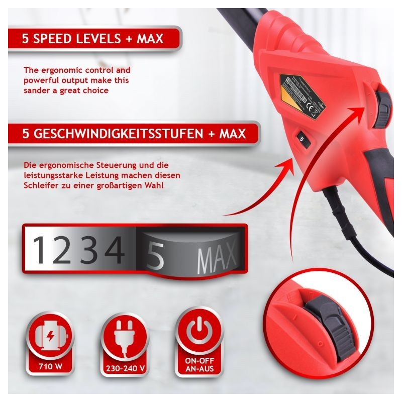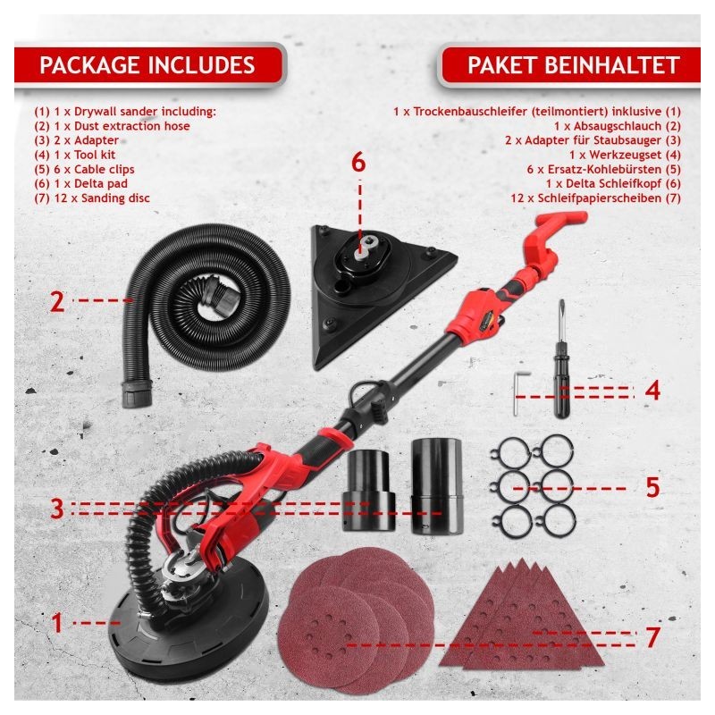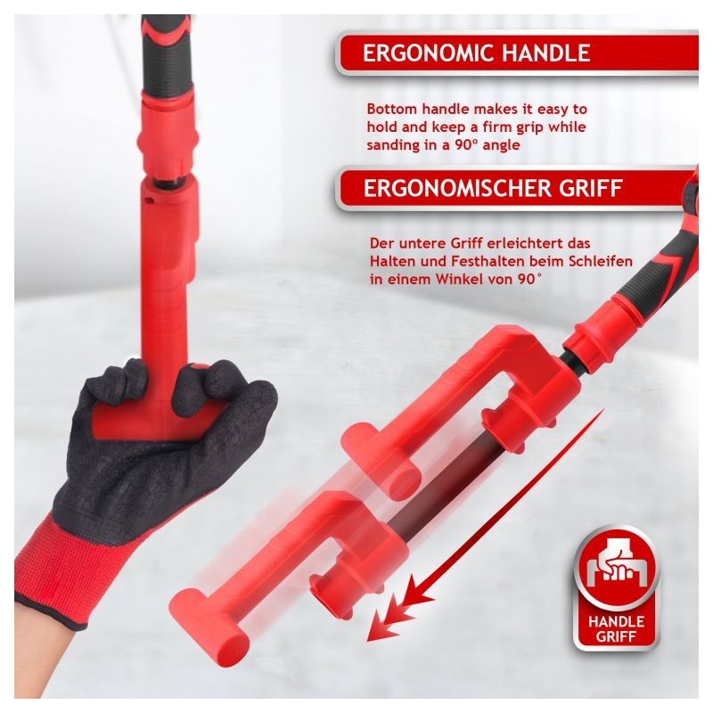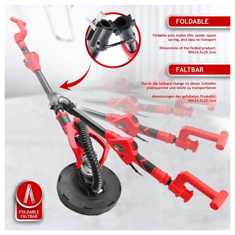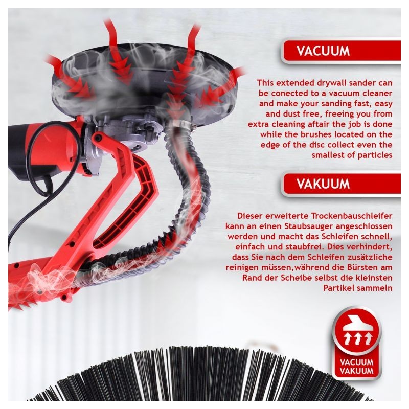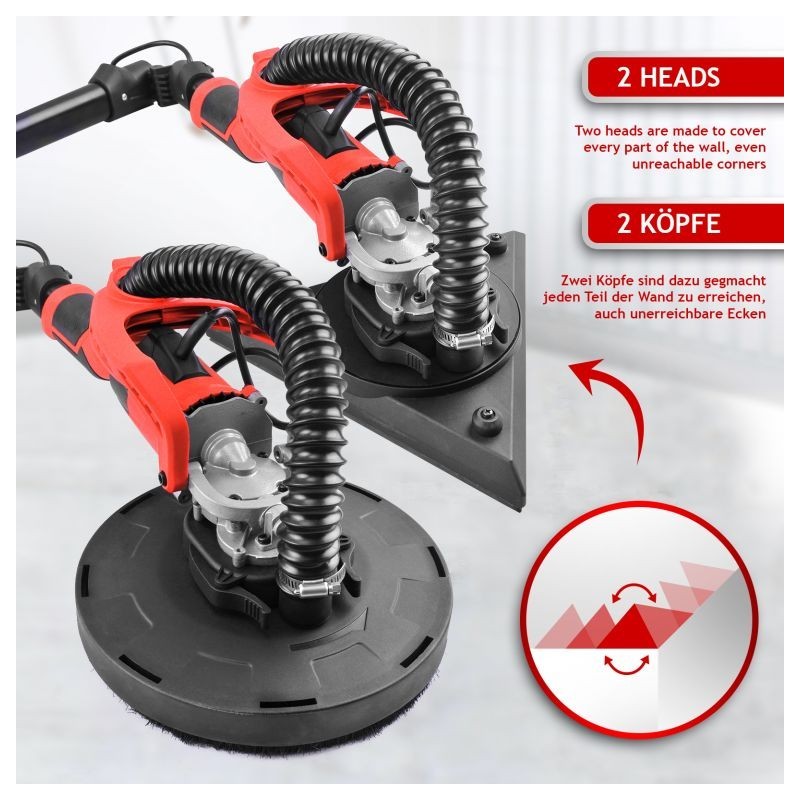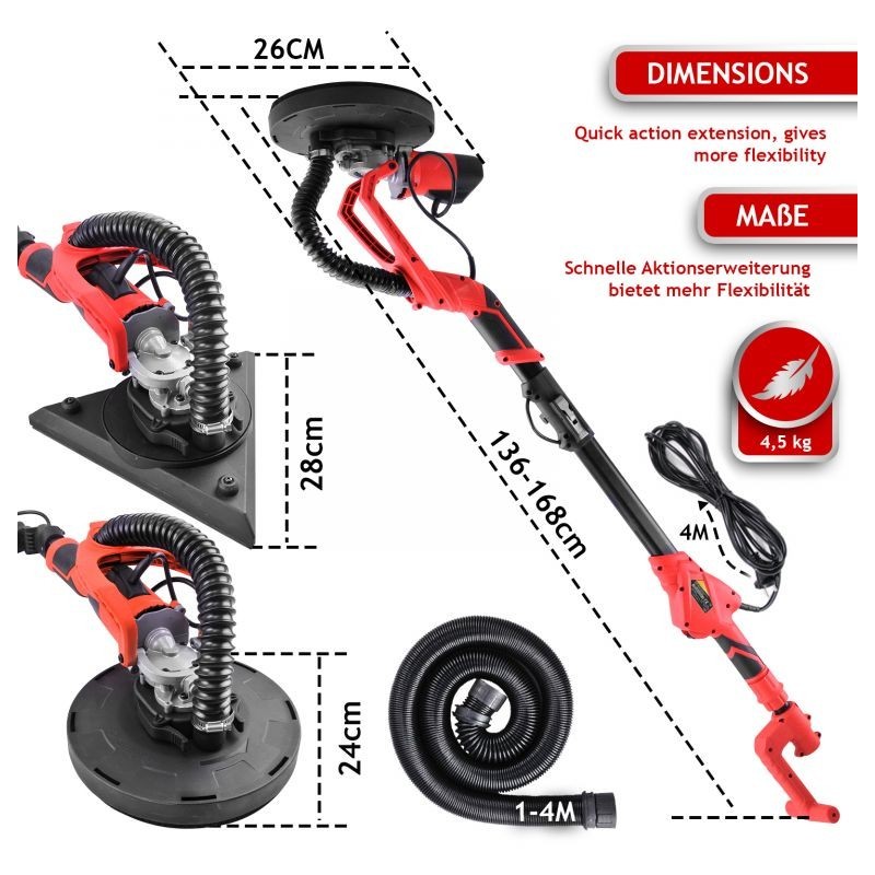 Vysúvacia brúska na sadrokartón je ideálna pre maliarov a štukatérov. Pokiaľ ide o dosiahnutie dokonalých výsledkov, táto stropná brúska Vám ušetrí čas a námahu s premiestňovaním rebríka každých pár minút. Ergonomické ovládanie a vysoký výkon robia z brúsky skvele zvoleného pomocníka. Zároveň získate mnoho doplnkov, takže môžete okamžite začať pracovať. Dvanásť brúsnych kotúčov s rôznymi zrnitosťami sa prispôsobí každej úlohe. Vďaka otočnej hlave sa dostanete aj do tých najťažších rohov, skvelá voľba pre každého profesionálneho majstra.