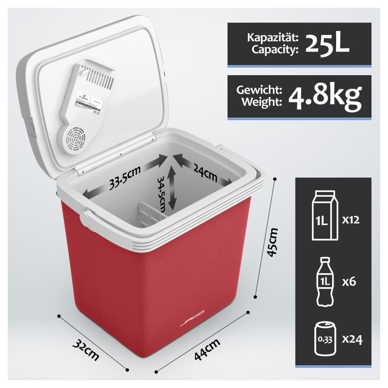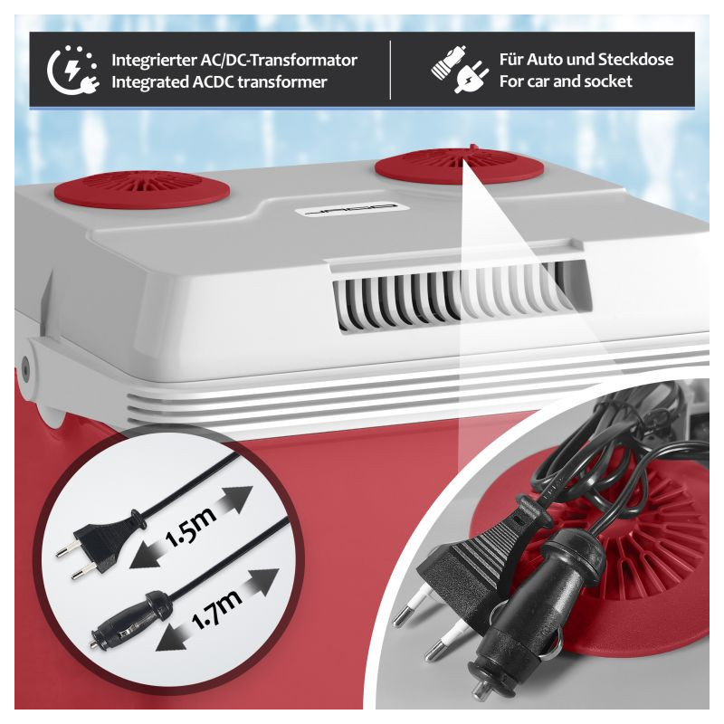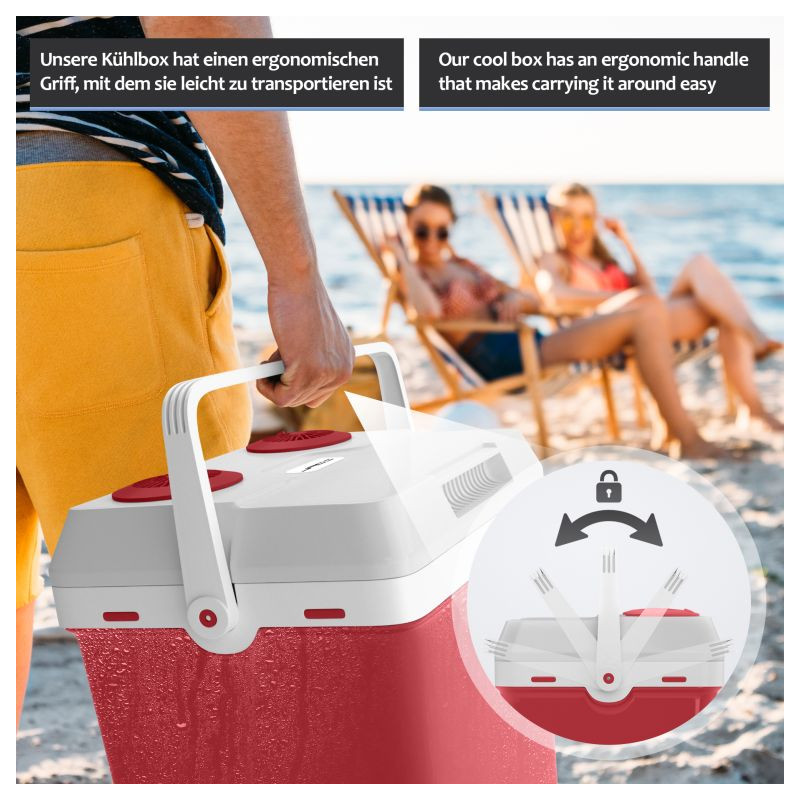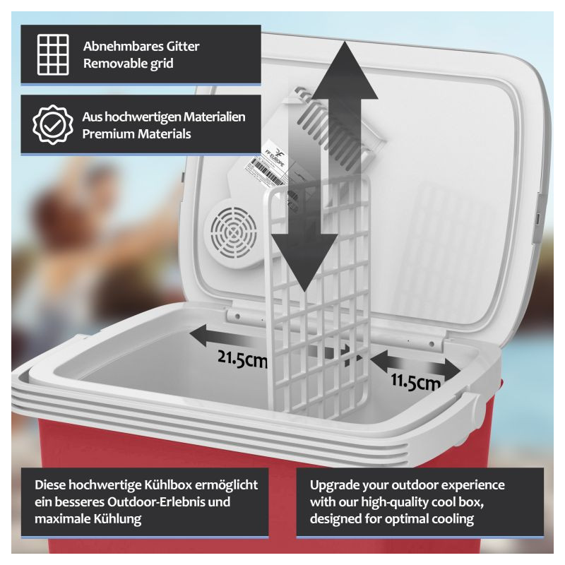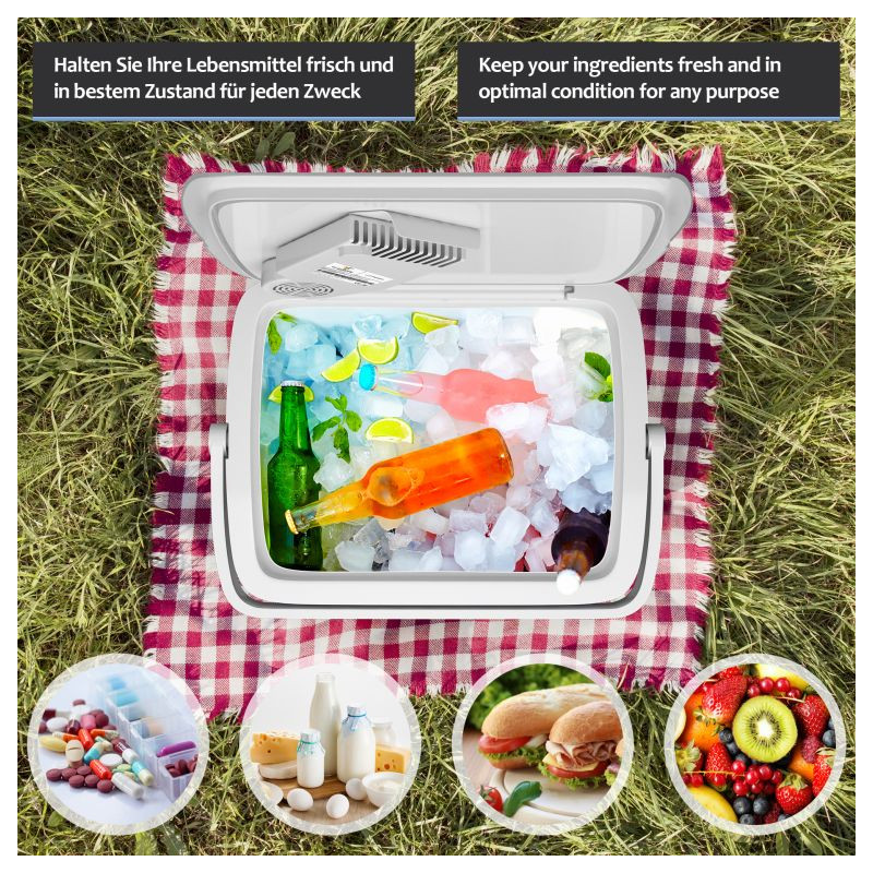 Náš chladiaci box ponúka dve rôzne funkcie: chladenie a ohrev. Dokáže udržať vaše nápoje chladné a čerstvé alebo udržať vaše jedlo a občerstvenie teplé celé hodiny. So zabudovaným madlom pre ľahké prenáša. Súčasťou je mriežková vložka na lepšie usporiadanie úložného priestoru. Majte všetky desiaty a nápoje po ruke a užite si svoje obľúbené outdoorové aktivity!