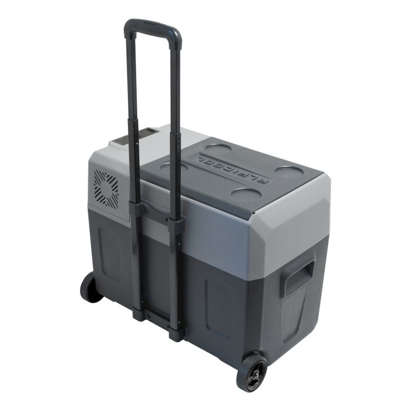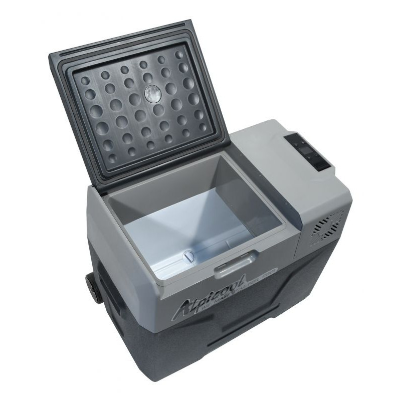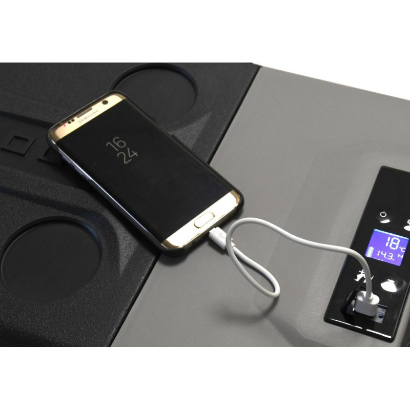 Chladiaci box je vybavený výkonným kompresorom s chladiacim médiom a možno ho použiť buď ako chladničku s teplotou 0 - 10 °C alebo ako mraziaci box s teplotou až -20 °C. Chladiaci box ponúka režim ECO pre úsporu elektrickej energie a Hi mode pre rýchle ochladenie obsahu až k -20 °C (pri okolitej teplote 25 °C). Ďalej je vybavený inteligentným systémom ochrany pred vybitím pripojeného akumulátora a má osadený displej s tlačidlami pre pohodlné ovládanie. Vďaka postranným madlám, vysúvacím rukovätiam a kolieskam je zabezpečená vynikajúca mobilita. Vonkajší plášť je prevedený z mohutných, odolných plastov v sivom prevedení. Spolu s PU izoláciou zaisťujú dlhodobé zachovanie stabilnej teploty vo vnútri boxu a zaručujú veľmi nízku spotrebu energie. Okraj ovládacieho panelu je doplnený o krytú USB zásuvku pre napájanie zariadení s USB konektorom.