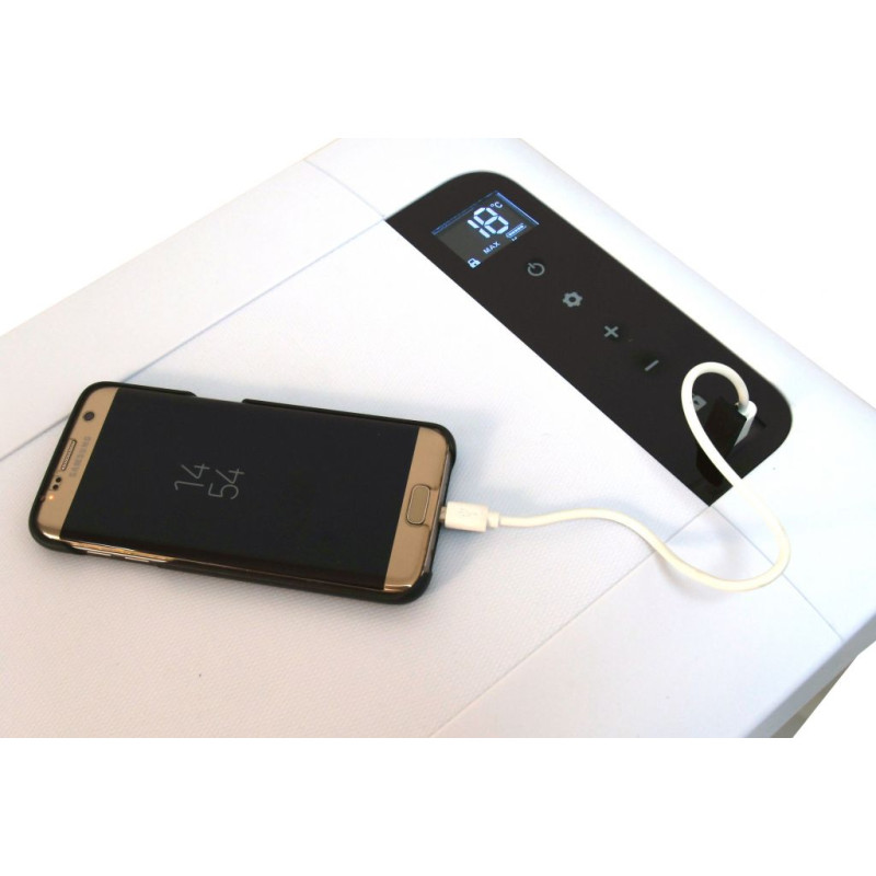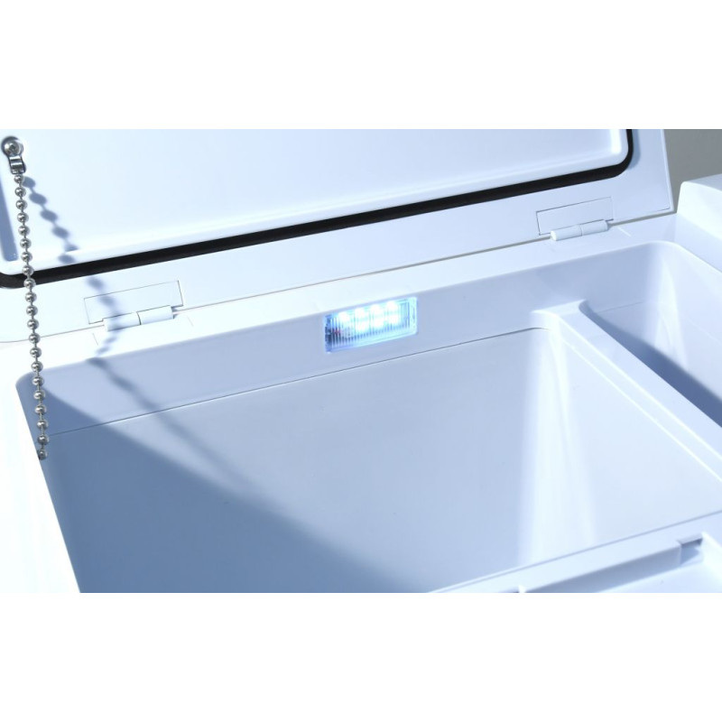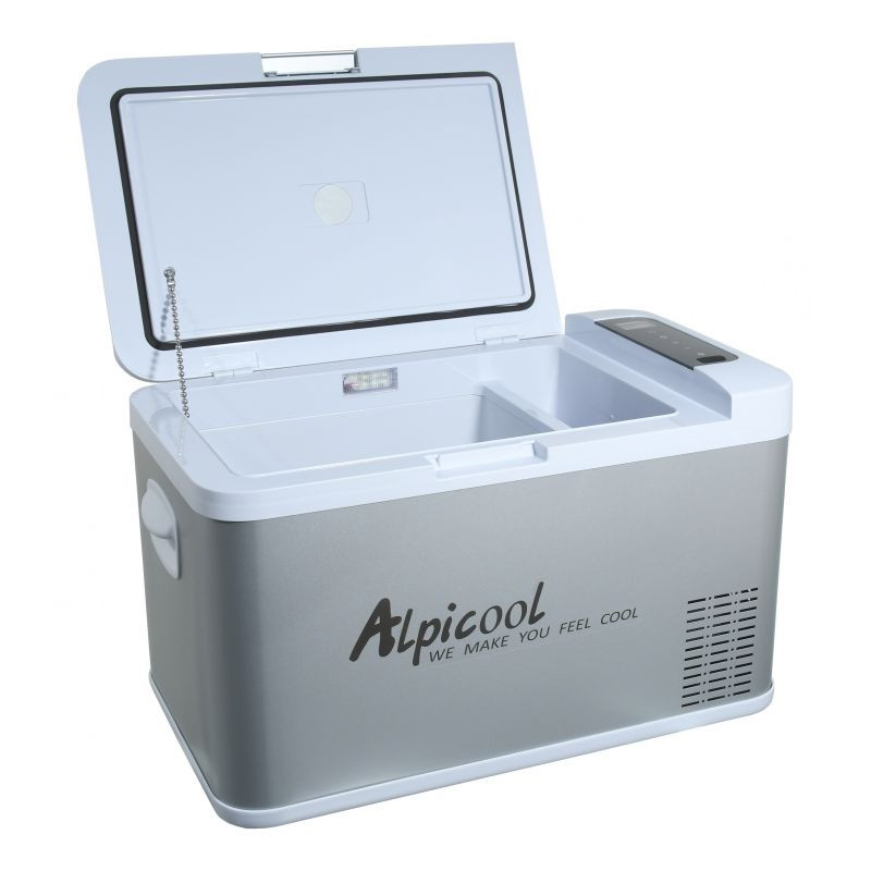 Chladiaci box je vybavený výkonným kompresorom s chladiacim médiom a možno ho použiť ako chladničku s teplotou 0 - 10 °C, zároveň ako mraziaci box s teplotou až -20 °C. Chladiaci box ponúka režim ECO pre úsporu elektrickej energie a Hi mode pre rýchle ochladenie obsahu až k -20 °C (pri okolitej teplote 25 °C). Ďalej je vybavený inteligentným systémom ochrany pred vybitím pripojeného akumulátora a má osadený displej s tlačidlami pre pohodlné ovládanie. Vďaka postranným madlám je zaistené komfortné prenášanie. Vonkajší plášť je vyrobený z kvalitne lakovaného hliníka striebornej farby, ktorý spolu s perfektnou PU izoláciou zaisťuje dlhodobé zachovanie stabilnej teploty vo vnútri boxu a zaručuje veľmi nízku spotrebu energie. Okraj ovládacieho panelu je doplnený o zakrytú USB zásuvku pre napájanie zariadení s USB konektorom.