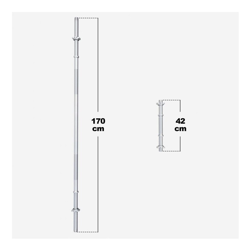 - Posilňovacia tyč: dĺžka: 170 cm, hmotnosť: 10 kg, priemer kotúčov: 30/31 mm, nástrčná plocha: 31,1 cm