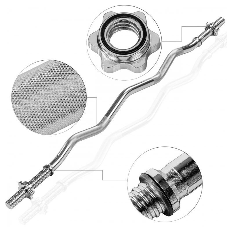 Posilňovacia sada s hrazdou a vybavením šetrí miesto a ľahko sa prepravuje, vďaka čomu je ideálna na cesty aj na doma. Zvlnená posilňovacia tyč má ergonomický tvar pre tréning šetrný k lakťom a zápästiam. Protišmykové rukoväte s krížovým ryhovaním zaisťujú bezpečné uchopenie aj pri spotených rukách, pružinové uzávery a činka z chrómovanej ocele, upevnenie disku 30 mm (štandardná). Maximálne zaťaženie je 120 kg. Pre cvičenie bez obáv boli tieto hrazdy testované na škodlivé látky inštitútom SGS a boli vyhlásené za neškodné.