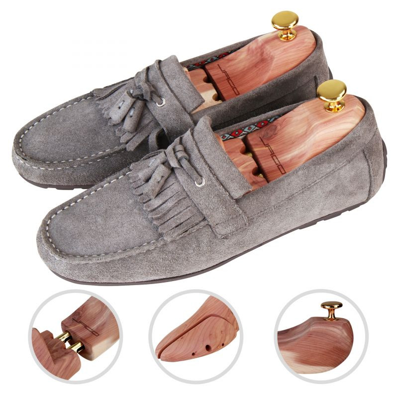 Iba pomocou rozťahovača topánok môžete zaistiť, že si topánky po použití zachovajú svoj tvar. Počas nosenia sa vplyvom vlhkosti rozširujú a potom opäť zmršťujú – s týmto klasickým naťahovačom obuvi v správnom tvare. Váš nový tvarovač je vyrobený z cédrového dreva, ktoré sa vyznačuje tým, že výborne odvádza vlhkosť z podrážky topánky. Urobte niečo dobré pre svoje topánky a nohy a kúpte si správny tvarovač.