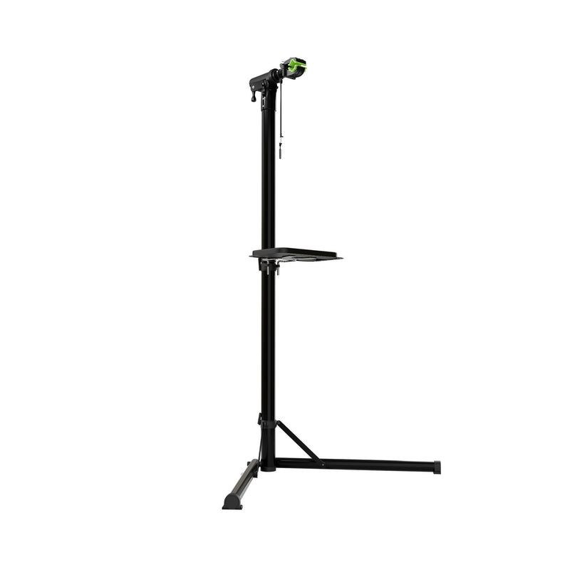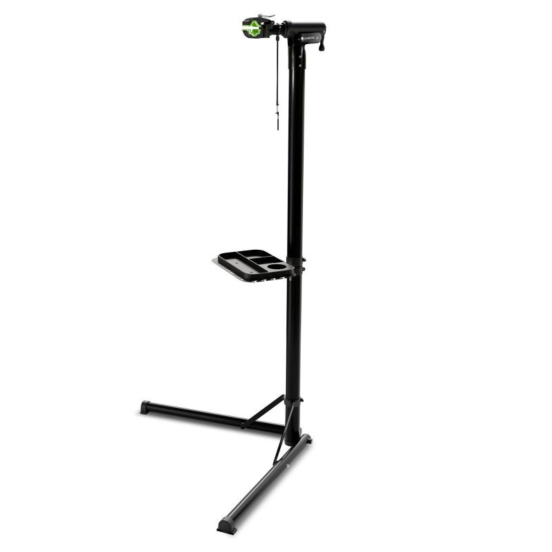 Tento praktický skladací servisný stojan na bicykle uľahčuje všetky opravy a údržbu. Vďaka výškovo nastaviteľnej konštrukcii, otočným čeľustiam o 360° a gumovému povrchu je práca pohodlná, bezpečná a mimoriadne šetrná k rámu. Magnetický odkladací povrch udrží všetko, čo potrebujete, po ruke, a systém rýchleho uvoľnenia zaručuje bezpečné uchytenie za pár sekúnd.