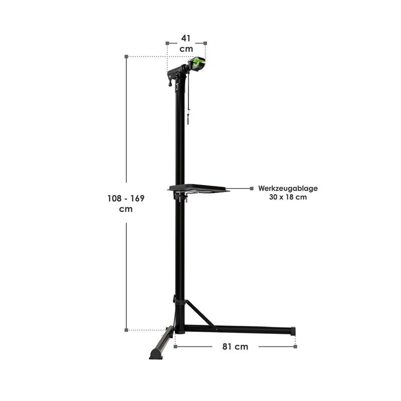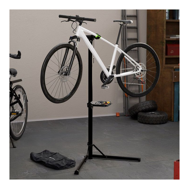 Robustná oceľová konštrukcia s nosnosťou až 50 kg je ideálna pre horské bicykle, cestné bicykle a elektrické bicykle. Stojan sa dá ľahko zložiť, prenášať v priloženej taške a vďaka protišmykovým nožičkám poskytuje stabilitu pri každom použití. Je to perfektná voľba pre domáce dielne a mobilné servisné použitie.