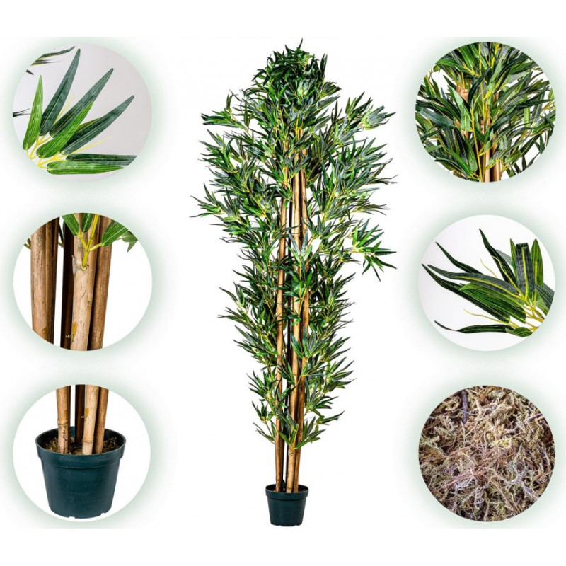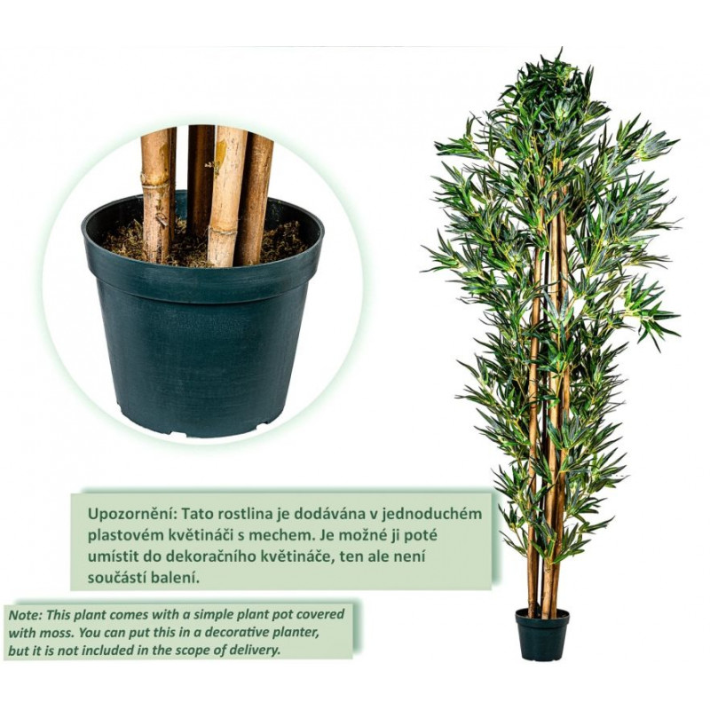 Tento nádherný bambus, verne napodobňujúci živý strom, je ideálnym doplnkom či už do Vášho domova, kancelárie či lekárskej ordinácie – skrátka všade tam, kde nie je dostatok svetla pre živú rastlinu, alebo kde nie je možné sa o živé rastliny pravidelne starať.