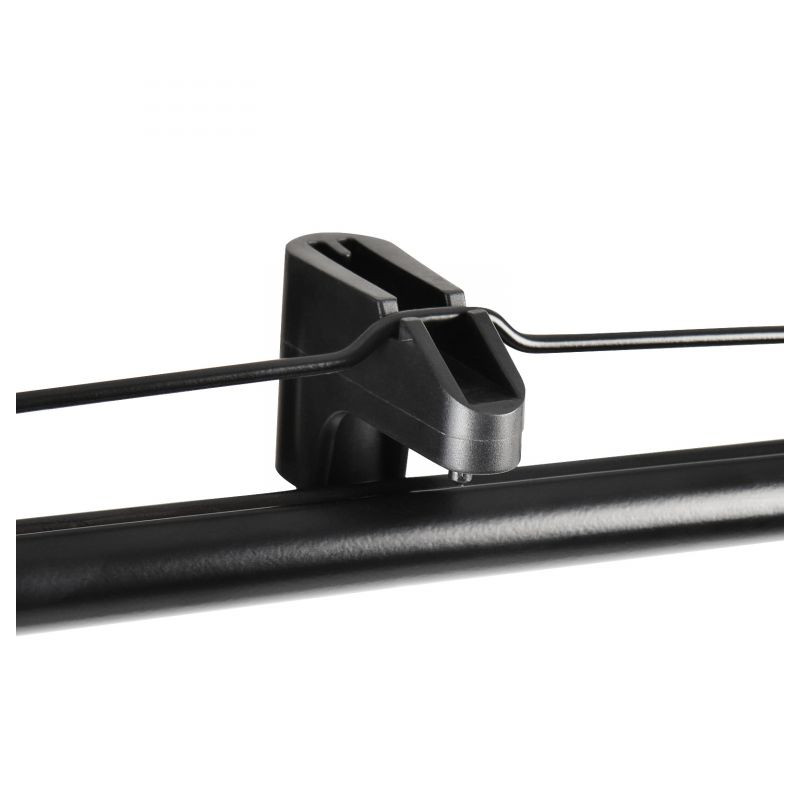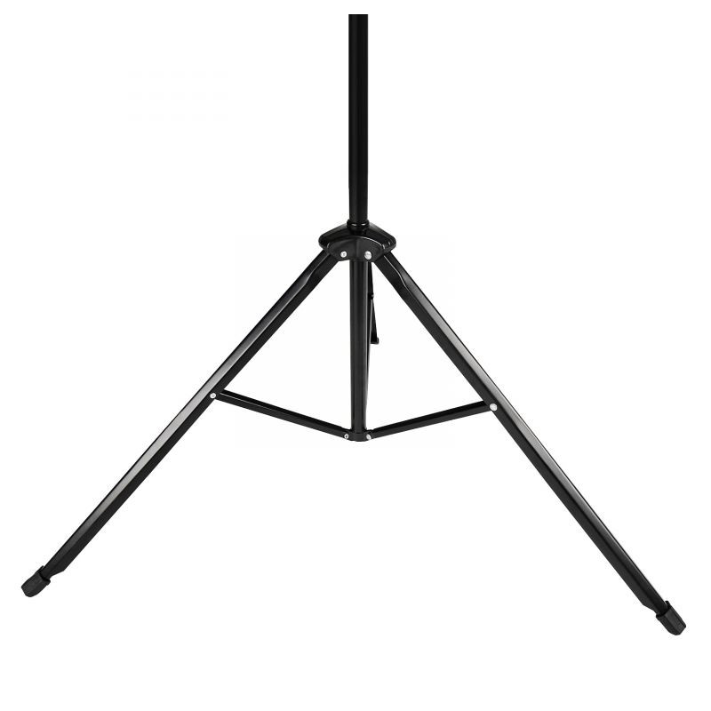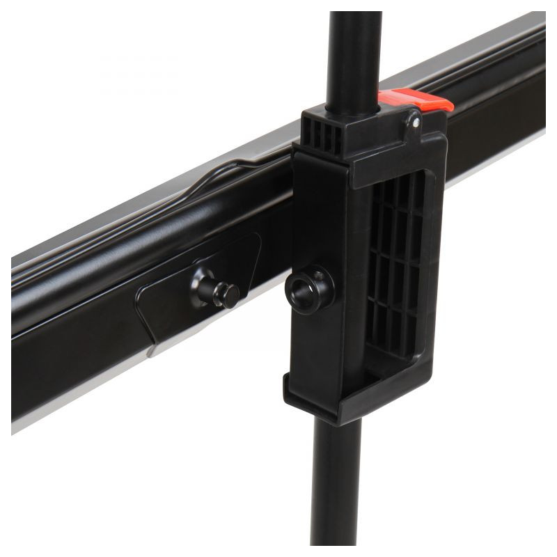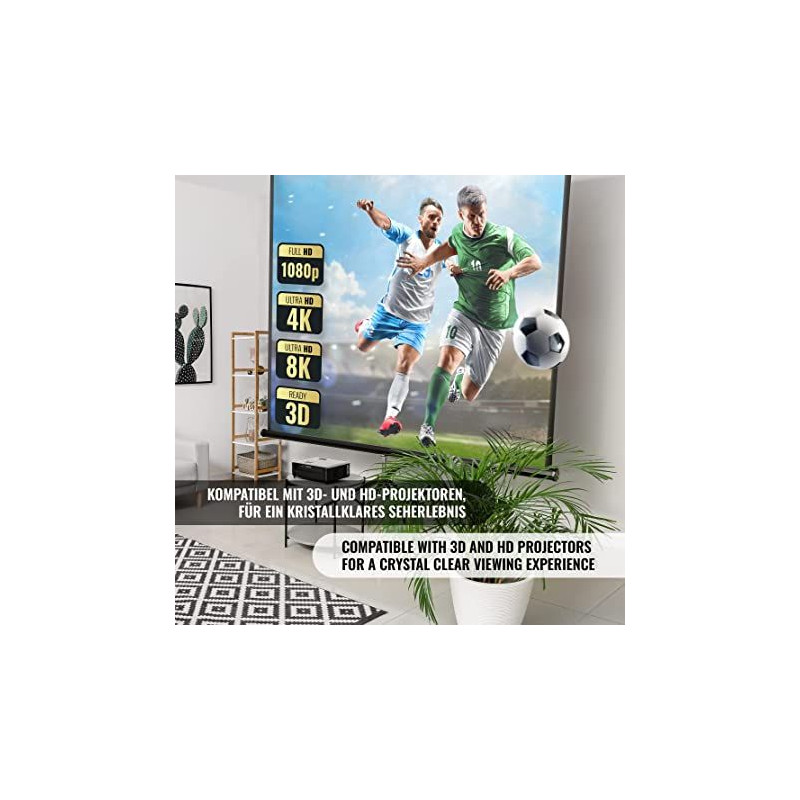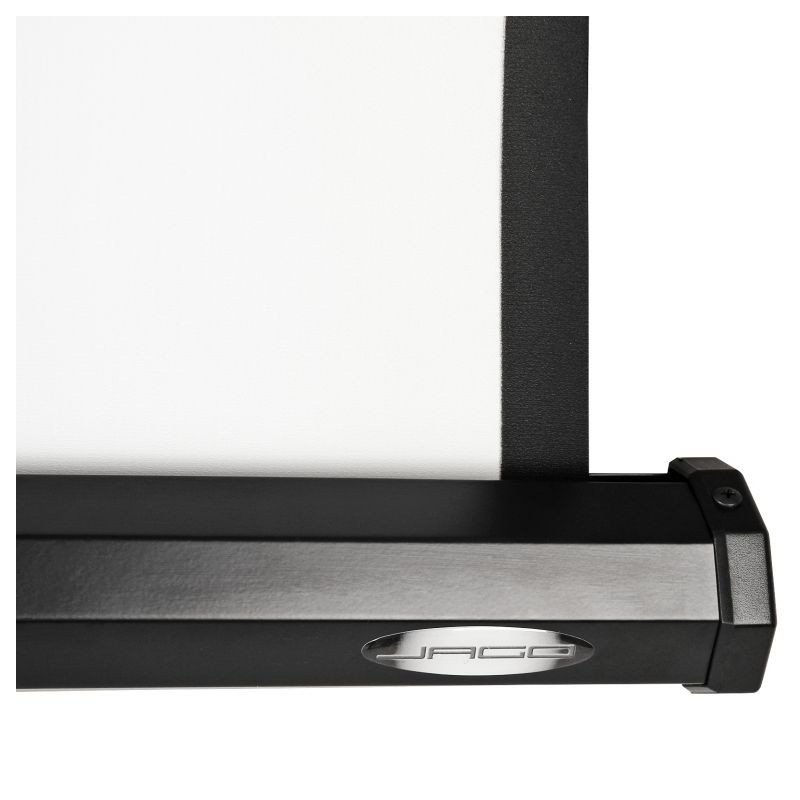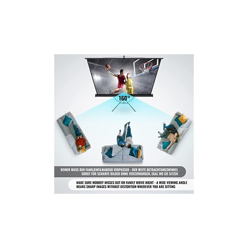 Robustný kovový statív zaisťuje bezpečný stojan. Plátno je vyrobené z trojvrstvovej tkaniny a je potiahnutý vinylom, takže sa ľahko čistí. Čierne maskovanie okrajov po stranách a čierna zadná strana plátna zaisťujú optimálny kontrast. Záťažová tyč zabraňuje zbytočným záhybom.