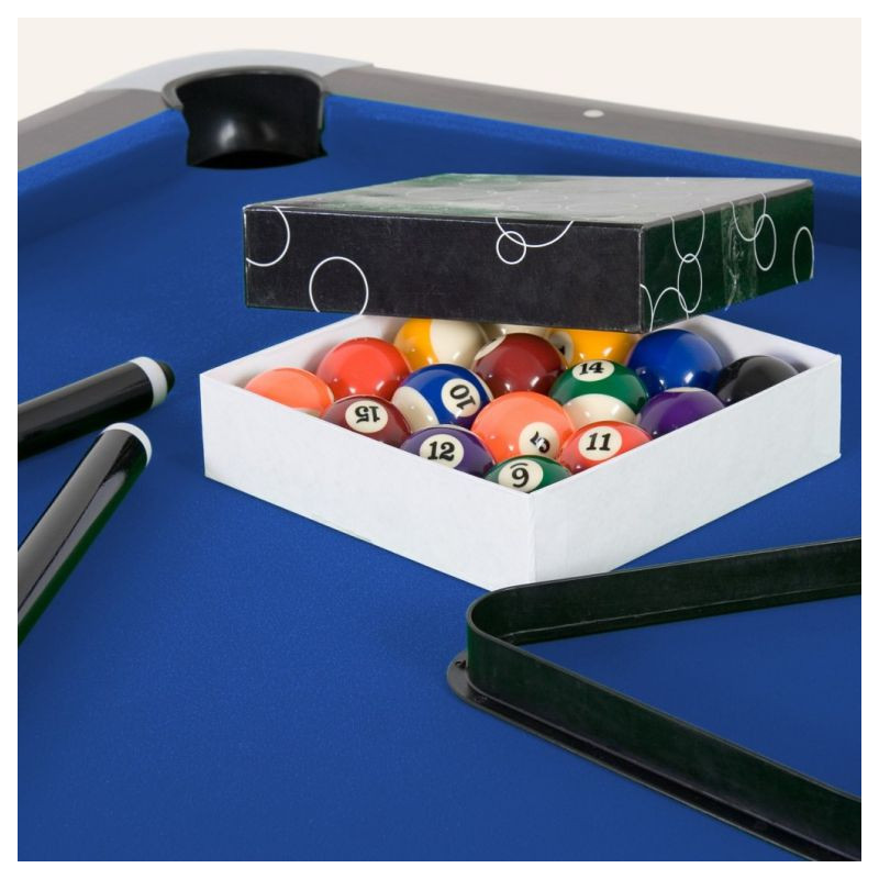 Profesionálny biliardový stôl s nastaviteľnými nohami v najvyššej kvalite. Luxusný a elegantný vzhľad. Stačí len rozbaliť a behom chvíľky môžete začať hrať. Pozvite známych, priateľov, rodinu na biliardový trunaj k Vám domov. Dnes už nemusíte chodiť na biliard do zafajčených podnikov. Biliard je vďaka pevnej konštrukcii stabilný. Rohy z chrómu sú chránené proti odreniu. Jednoduchá starostlivosť vďaka kefe, ktorá rýchlo zbaví nečistôt.