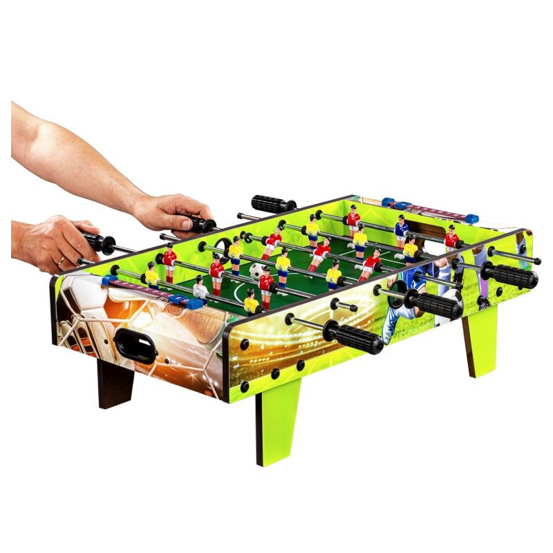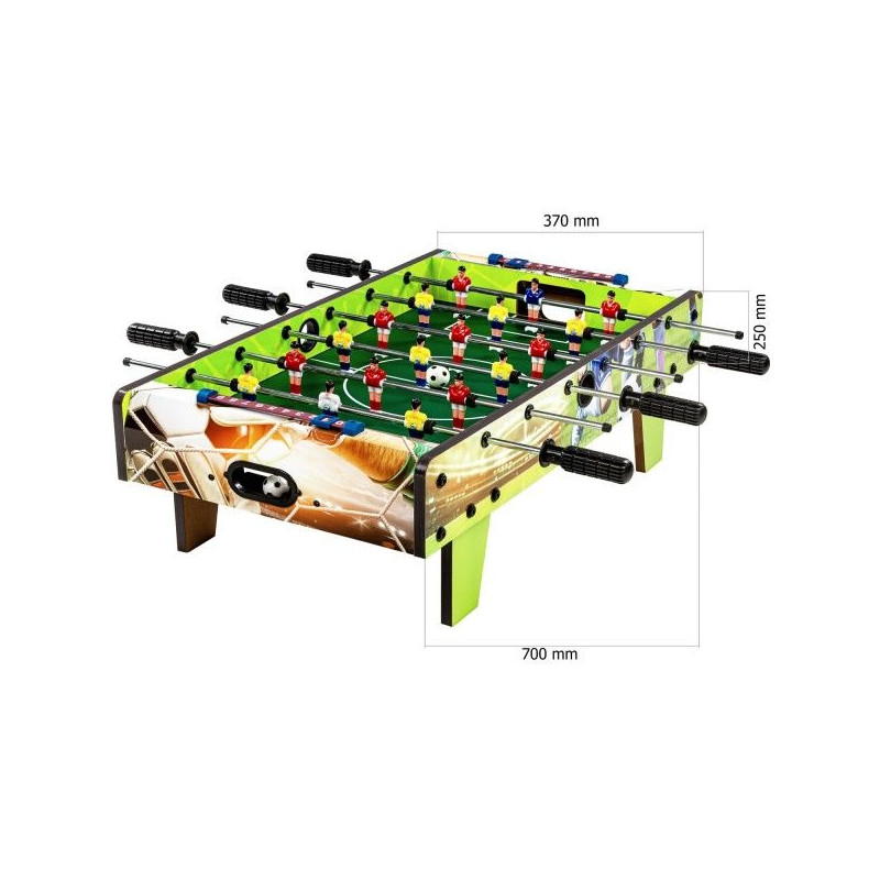 S mini stolným futbalom môžete mať svoj futbal kdekoľvek! Či už v materskej škôlke, v kancelárii, v krčme alebo na dovolenke - možnosti sú nekonečné. Jeho kompaktné rozmery uľahčujú uloženie a je vždy pripravený na použitie.