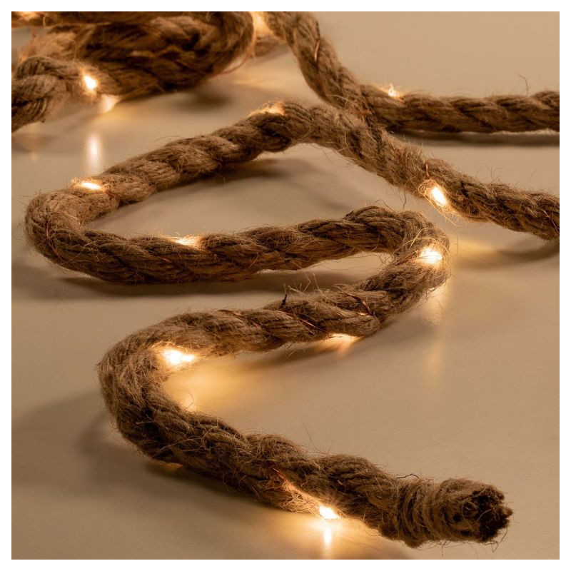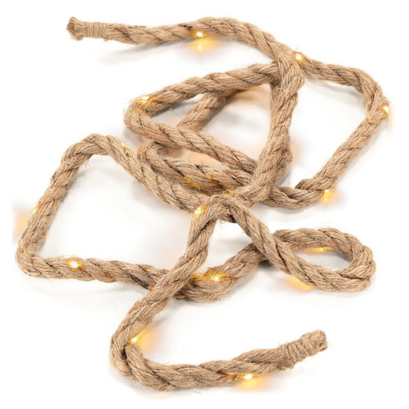 Elegantná vianočná dekorácia s dĺžkou lana 2 metre, vybavená 25 teplo bielymi svietiacimi LED diódami pre zavesenie. Vďaka batériovej prevádzke ste s týmto dekoratívnym prvkom nezávislí na externých zdrojoch energie a môžete svetelné lano umiestniť po celej miestnosti. LED diódy zaisťujú extrémne nízku spotrebu energie. Vďaka svetelnej dekorácii v elegantnom dizajne z konopného lana máte niekoľko možností designu, či už vedľa vianočného stromčeka, na okne alebo na polici, tento svetelný prvok vytvára útulnú vianočnú atmosféru. S časovačom s dobou svietenia až 6 hodín sa môžete sami rozhodnúť, kedy chcete zapnúť osvetlenie. Voľne voliteľná funkcia časovača alebo nepretržitého osvetlenia.