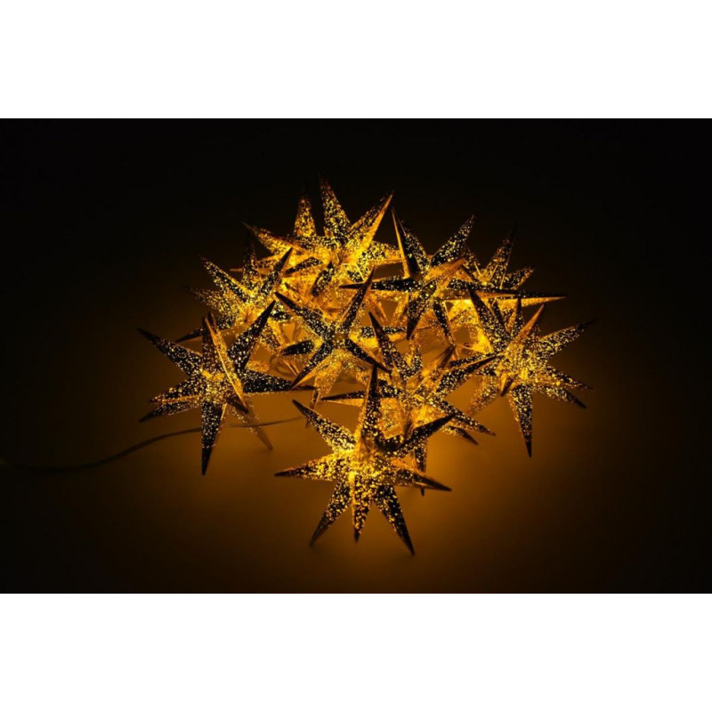 Tieto rozprávkové svetielka je možné použiť univerzálne, či už v obývacej izbe, zimnej záhrade, spoločenskej miestnosti, na vonkajšej fasáde reštaurácií a barov, na terase, na záhrade alebo na akciách ako sú svadby, narodeniny alebo výročia, je svetelný zdroj všade skutočným pútačom. 10 teple bielych žiariacich hviezd v celkovej dĺžke 6,35 metra, vrátane 5 metrov prívodného kábla vytvára párty náladu a slávnostnú atmosféru. Nízka spotreba energie LED diód tiež chráni vašu peňaženku. Súčasťou je praktický časovač, kde si nastavíte dobu svietenia na 6 hodín a potom 18 hodinovú prestávku. To znamená, že ho nemusíte zapínať večer za súmraku alebo myslieť na jeho vypnutie v tme uprostred noci. Funkciu časovača a trvalého svietenia je možné ľubovoľne zvoliť. Vďaka triede ochrany IP44 je reťaz vhodná nielen na vnútorné použitie. Doplňte svoju vianočnú výzdobu o ďalšie skvelé zimné, vianočné svetelné dekorácie ako sú rozprávkové svetielka, svetelné stromčeky, svetelné siete, svetelné závesy, LED vetvy, gule, hviezdy, soby, lucerny a sviečky z nášho sortimentu.