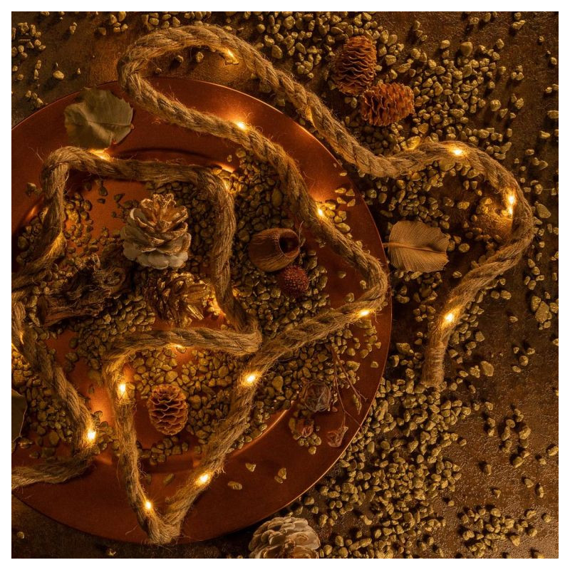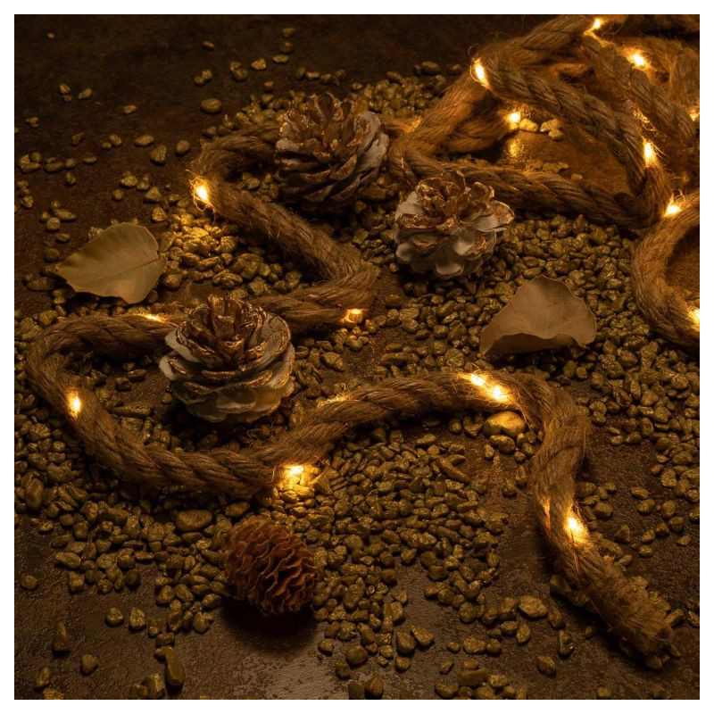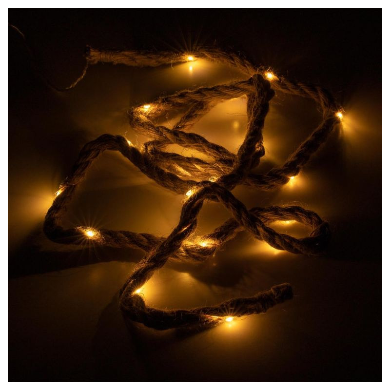 Elegantná dekorácia s dĺžkou lana 2 metre, vybavená 25 teplo bielymi svietiacimi LED diódami pre zavesenie. Vďaka batériovej prevádzke ste s týmto dekoratívnym prvkom nezávislí na externých zdrojoch energie a môžete svetelné lano umiestniť po celej miestnosti. LED diódy zaisťujú extrémne nízku spotrebu energie. Vďaka svetelnej dekorácii v elegantnom dizajne z konopného lana máte niekoľko možností designu, či už vedľa vianočného stromčeka, na okne alebo na polici, tento svetelný prvok vytvára útulnú vianočnú atmosféru. S časovačom s dobou svietenia až 6 hodín sa môžete sami rozhodnúť, kedy chcete zapnúť osvetlenie. Voľne voliteľná funkcia časovača alebo nepretržitého osvetlenia.
