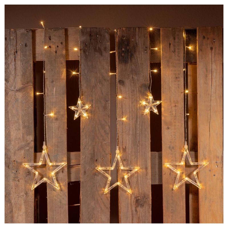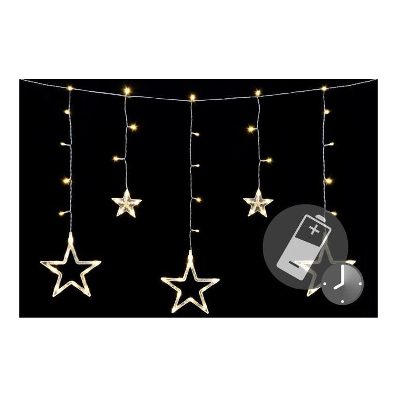 Prekrásna vianočná svetelná dekorácia - LED reťaz s hviezdami. Určite oceníte diaľkové ovládanie, ktoré je súčasťou tejto reťaze. Vďaka nemu môžete nastaviť 6-hodinový časovač svietenia, stmievania farieb a ďalších 9 funkcií osvetlenia. Osvetlenie je vhodné pre použitie v interiéri aj exteriéri a vďaka napájaniu na batérie ho môžete umiestniť skutočne kamkoľvek.