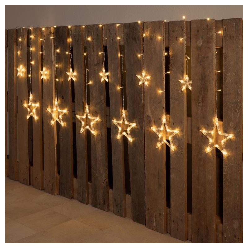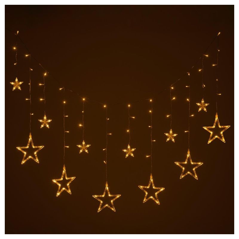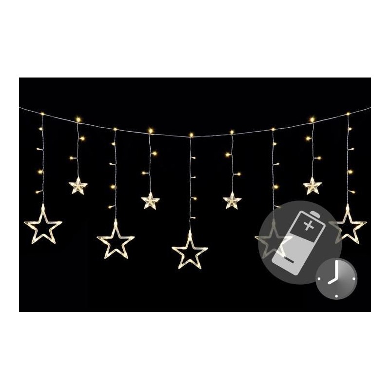 Prekrásna vianočná svetelná dekorácia - LED reťaz s hviezdami. Určite oceníte diaľkové ovládanie, ktoré je súčasťou tejto reťaze. Vďaka nemu môžete nastaviť 6-hodinový časovač svietenia, stmievania farieb a ďalších 9 funkcií osvetlenia. Osvetlenie je vhodné pre použitie v interiéri aj exteriéri a vďaka napájaniu na batérie ho môžete umiestniť skutočne kamkoľvek.