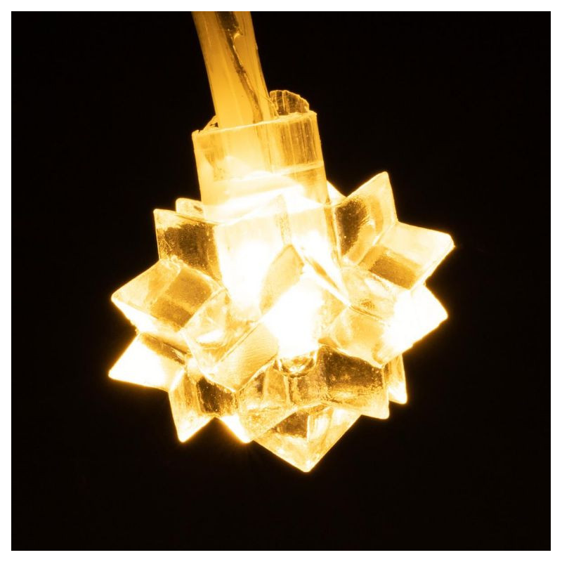 Párty a slávnostné osvetlenie - táto svetelná reťaz s krásne tvarovanými akrylovými hviezdami pre každú slávnostnú príležitosť. Nastavte si vlastné svetelné akcenty po celý rok a vyzdobte si dom, zimnú záhradu alebo spoločenskú miestnosť. Možnosti dizajnu sa neobmedzujú Pomocou časovača môžete rozhodnúť, kedy chcete osvetlenie zapnúť. Voľne voliteľná funkcia časovača alebo nepretržitého svietenia.