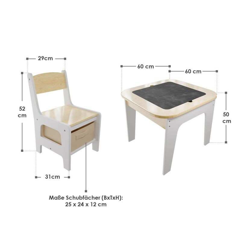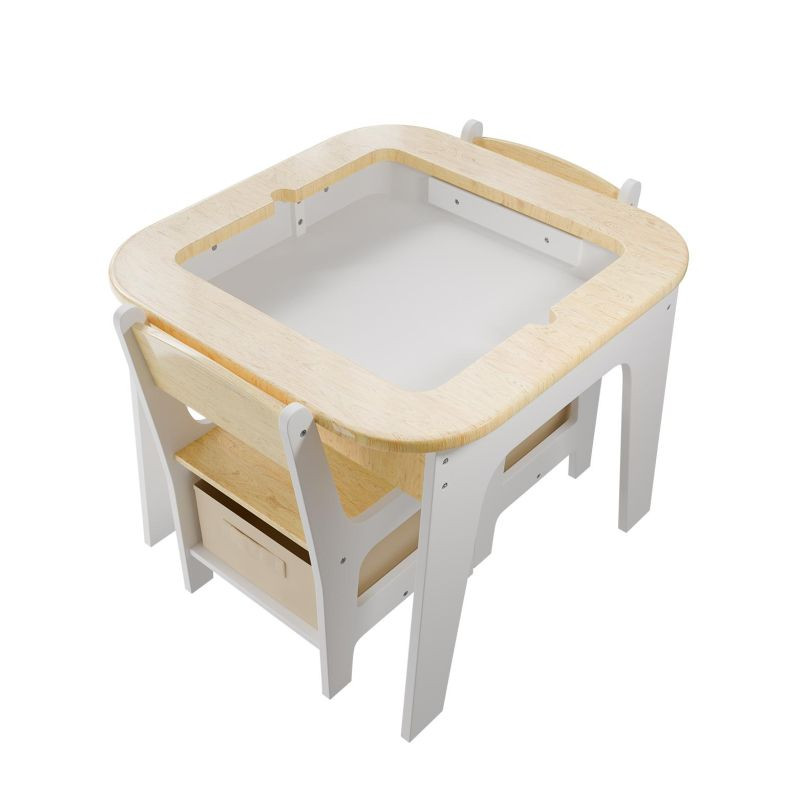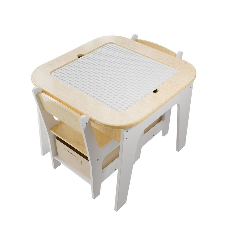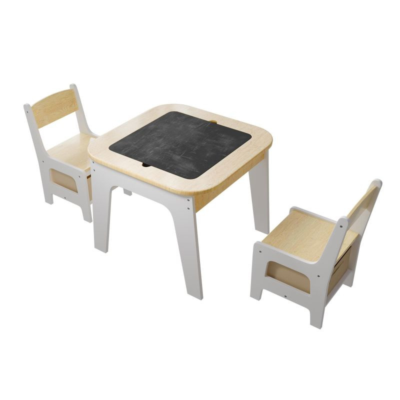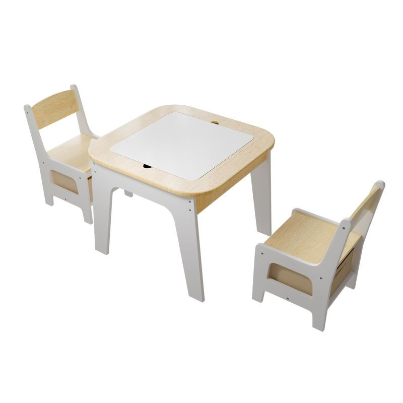 Robustná konštrukcia z prírodného dreva zaisťuje dlhú životnosť a bezpečnosť. Stôl s vymeniteľnými doskami ponúka rôzne herné možnosti – od kreslenia po stavanie kociek. Jednoduchá údržba a jednoduchá montáž poteší každého rodiča.