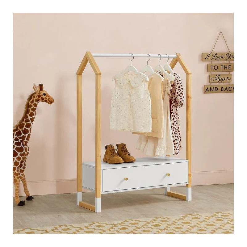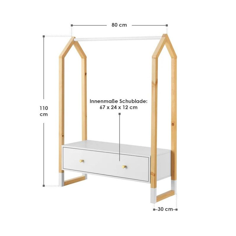 Vešiak na oblečenie je ideálnou voľbou pre modernú detskú izbu. Jeho jednoduchý a pritom hravý design podporuje kreativitu a samostatnosť detí. Otvorená konštrukcia umožňuje ľahký prístup ku všetkým veciam a motivuje deti k udržovaniu poriadku.