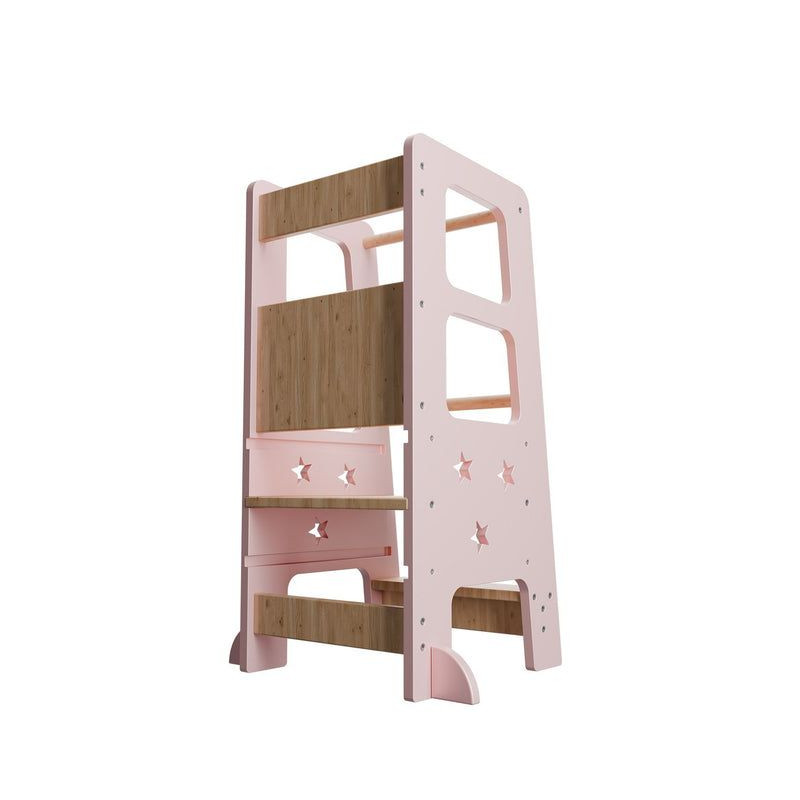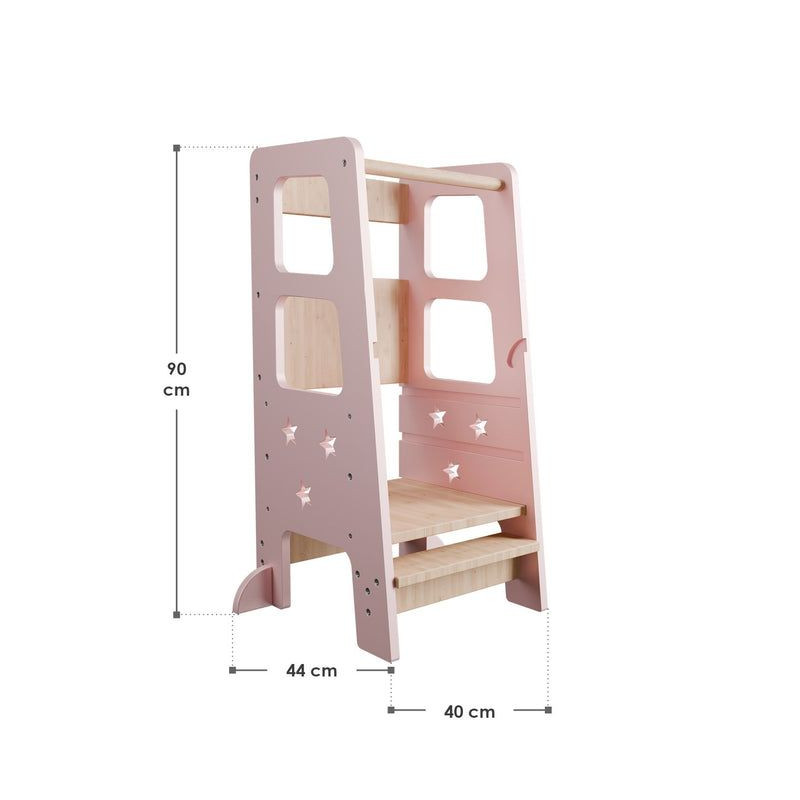 Rastúca detská učebná veža, ružová, výškovo nastaviteľná