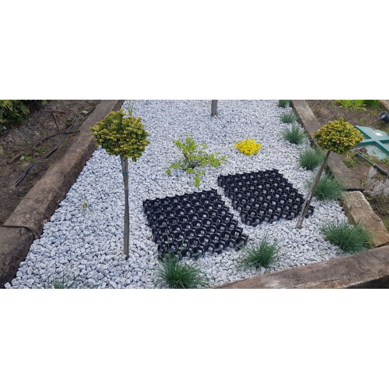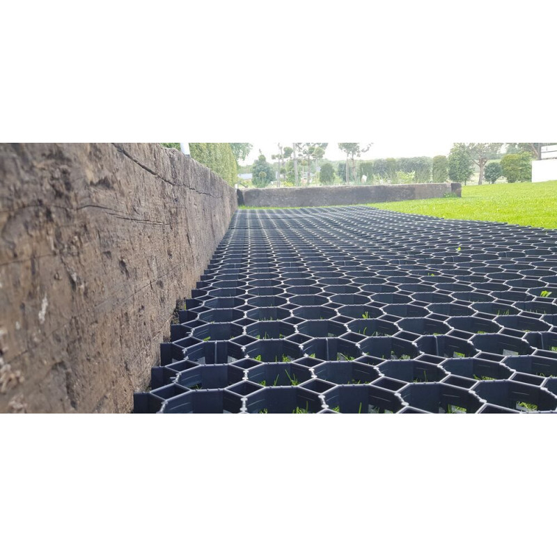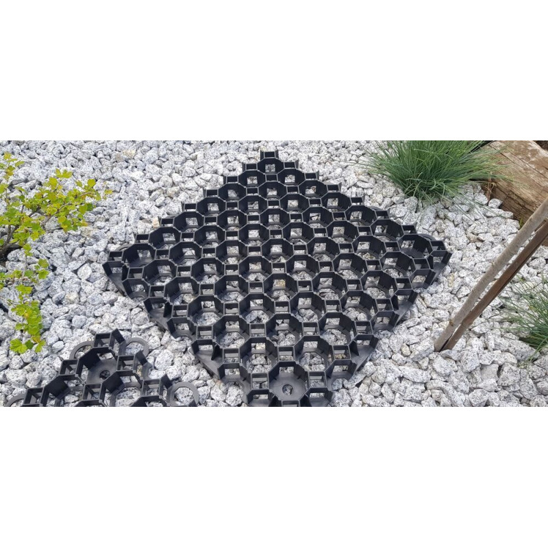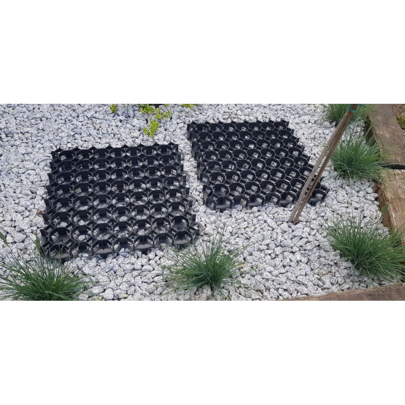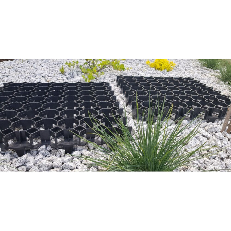 Veľkou výhodou tohto systému je, že umožňuje priesak dažďovej vody, čím podporuje prirodzený kolobeh vody. Inštalácia je veľmi jednoduchá a je možné ju vykonať svojpomocne. Mriežku môžete nechať voľne prerásť trávou, alebo ju vyplniť štrkom či štrkodrvou podľa Vašich preferencií. Každá dlaždica má 4 miesta na prípadné kotvenie, na ktoré je možné využiť klince pre záhonové obrubníky.