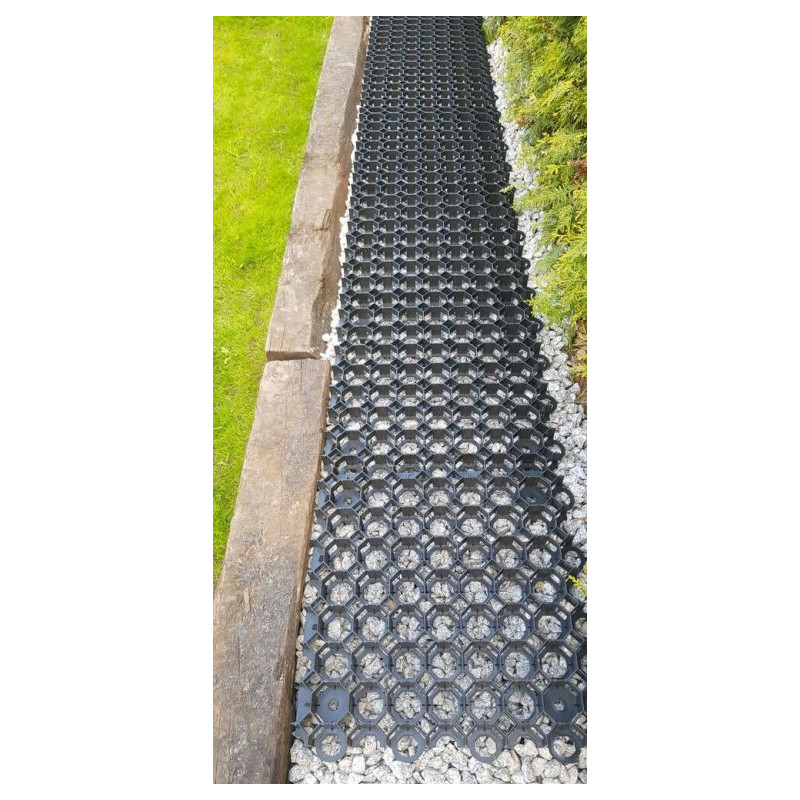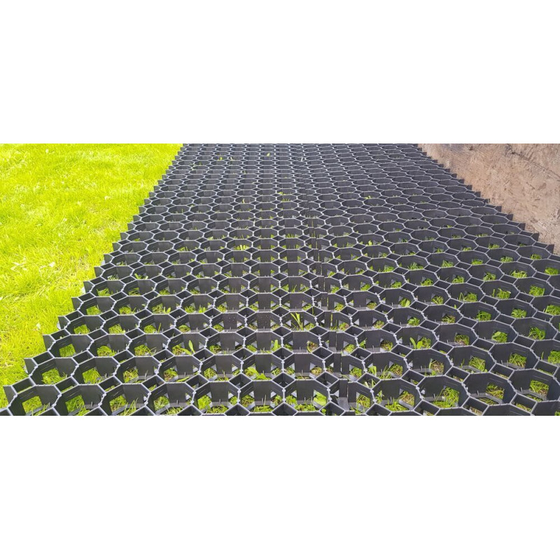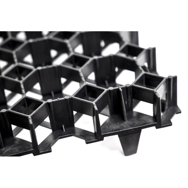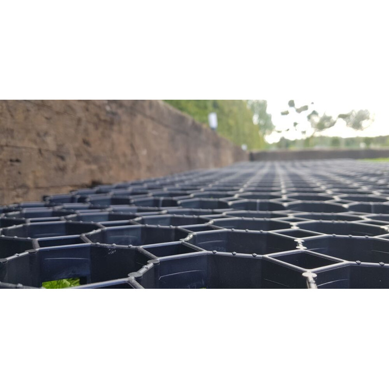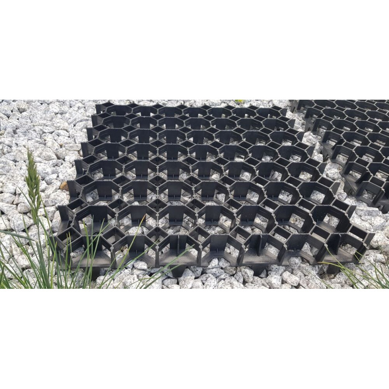 Veľkou výhodou tohto systému je, že umožňuje priesak dažďovej vody, čím podporuje prirodzený kolobeh vody. Inštalácia je veľmi jednoduchá a je možné ju vykonať svojpomocne. Mriežku môžete nechať voľne prerásť trávou, alebo ju vyplniť štrkom či štrkodrvou podľa Vašich preferencií. Každá dlaždica má 4 miesta na prípadné kotvenie, na ktoré je možné využiť klince pre záhonové obrubníky.