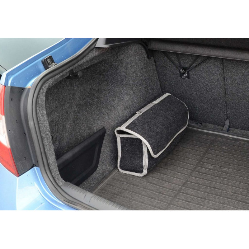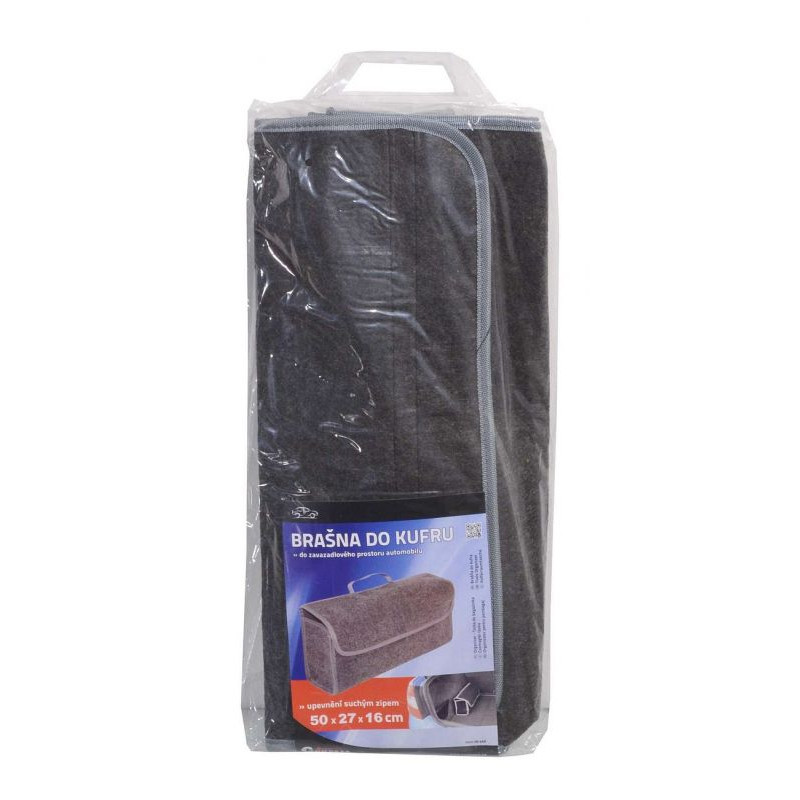 Univerzálna textilná taška, určená predovšetkým do batožinového priestoru osobného automobilu. Uzatvárateľná na suchý zips, ľahko prenosná vďaka uchu na hornej strane. Pásy suchého zipsu na zadnej strane pre ľahké prichytenie do batožinového priestoru automobilu.