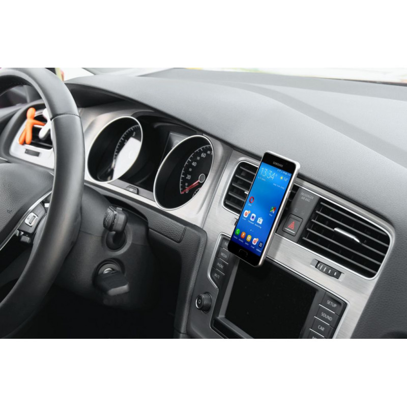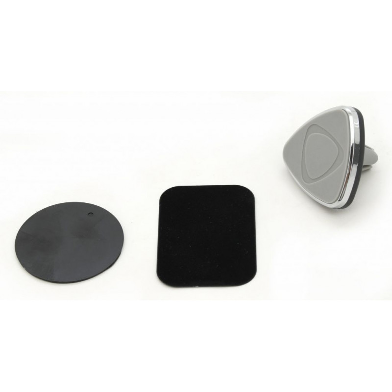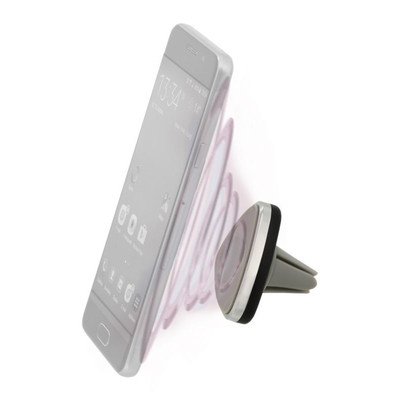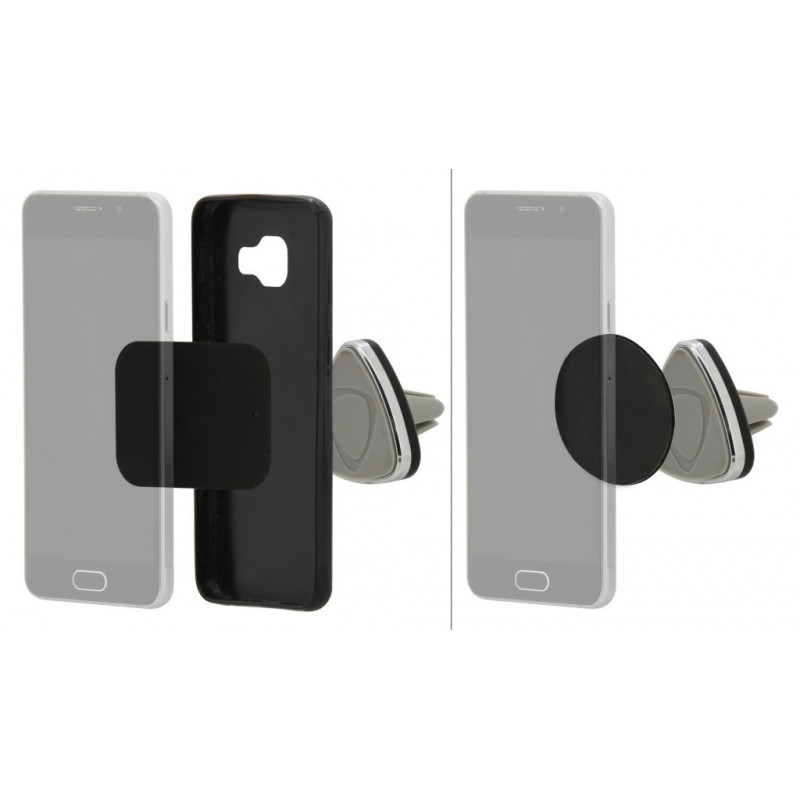Držiak je možné jednoducho umiestniť do mriežky ventilácie automobilu. Telefón stačí opatriť magnetickou samolepkou, alebo ak je opatrený krytom, potom medzi kryt a telefón magnetickou podložkou. Podložka zaistí okamžité prichytenie, pri priložení telefónu k držiaku.